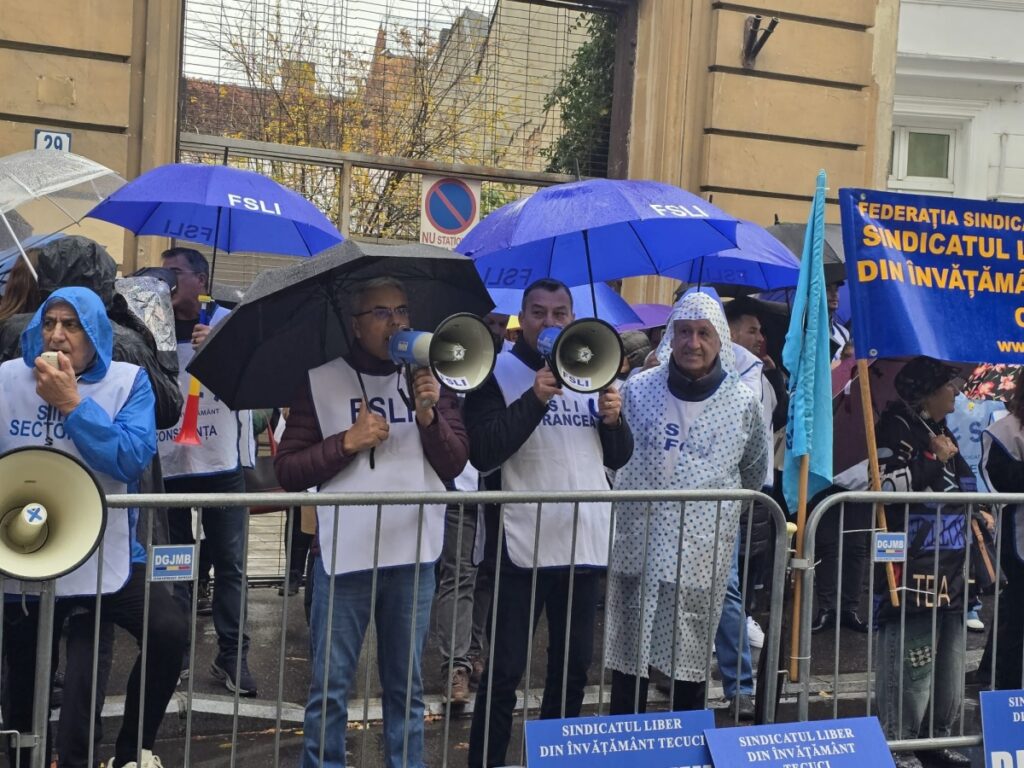 „Federaţia Sindicatelor Libere din Învăţământ şi Federaţia Sindicatelor din Educaţie „Spiru Haret” şi Federaţia Naţională Sindicală „Alma Mater” au protestat miercuri, 29 octombrie, în Piața Victoriei, în fața Guvernului, față de Legea 141/2025, cunoscută drept Legea Bolojan, și prevederile acesteia privind educația, conform paginilor de Facebook oficiale.