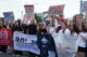 La manifestație, unde erau așteptați peste 500 de studenți, dar care a fost afectată de ploaie, potrivit imaginilor transmise de ANOSR, participanții au purtat mesaje precum „Nu tac studenții când vor decidenții”.