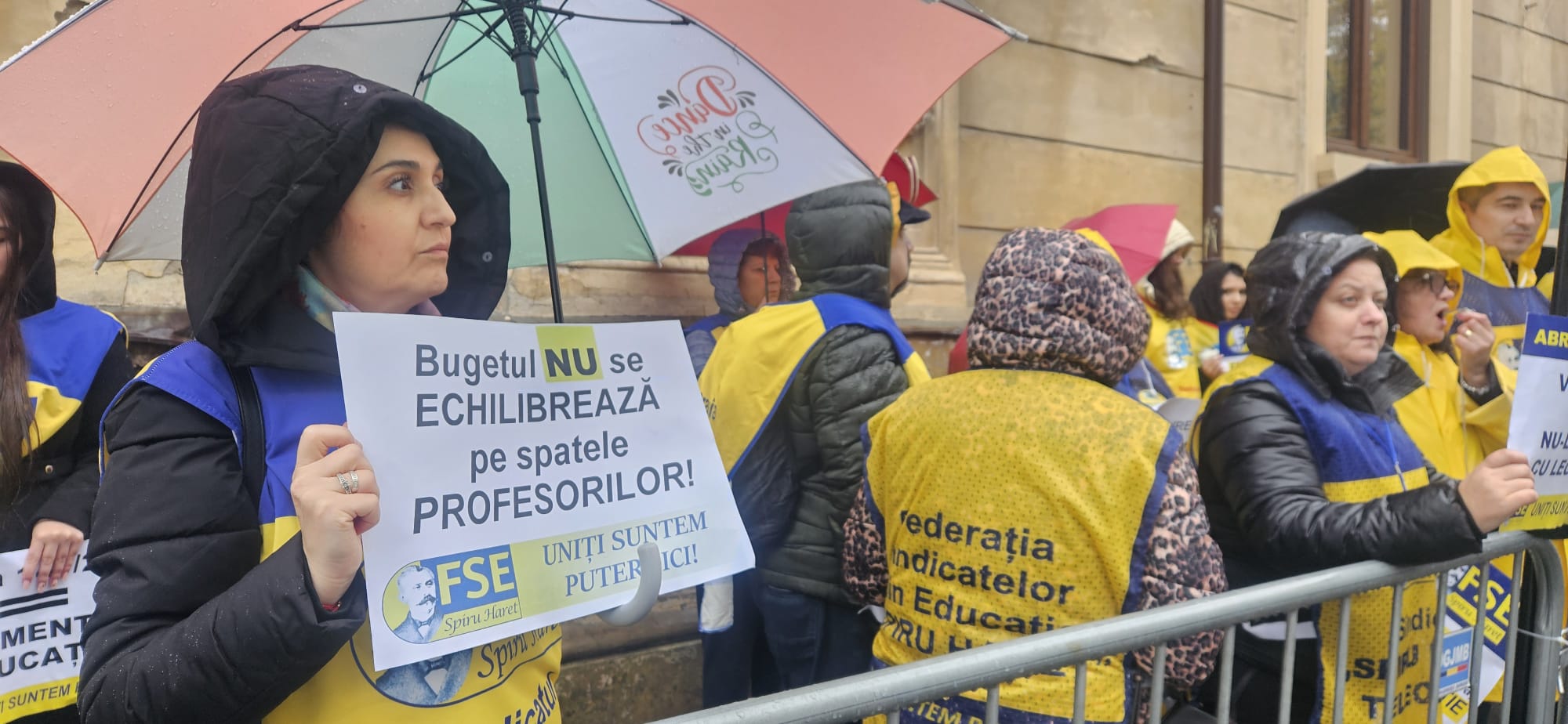 Mesajele profesorilor sunt următoarele: „Bugetul nu se echilibrează pe spatele profesorilor” și „Viitorul este în clase, nu-l distrugeți cu legi stupide”.