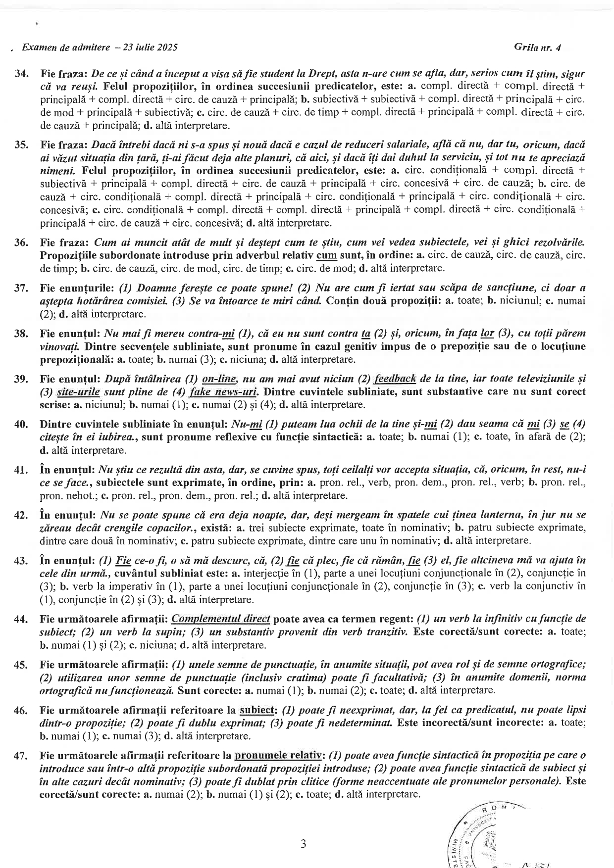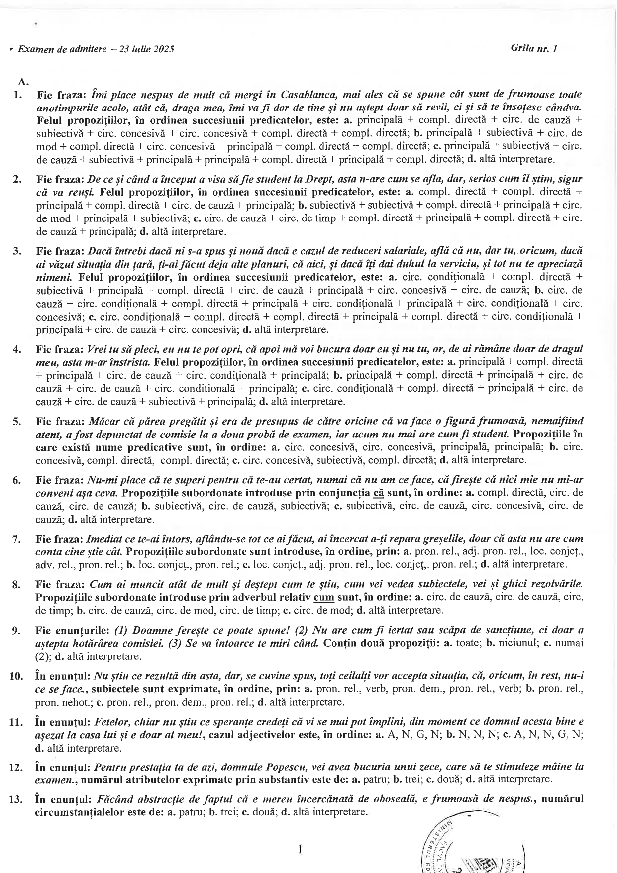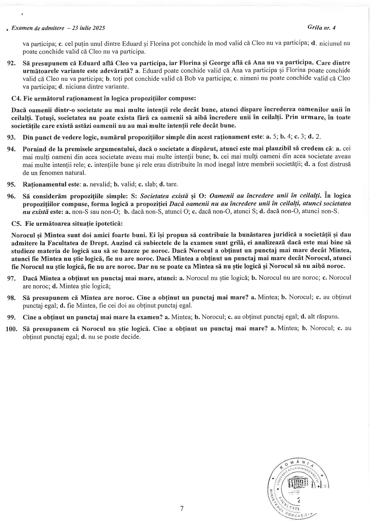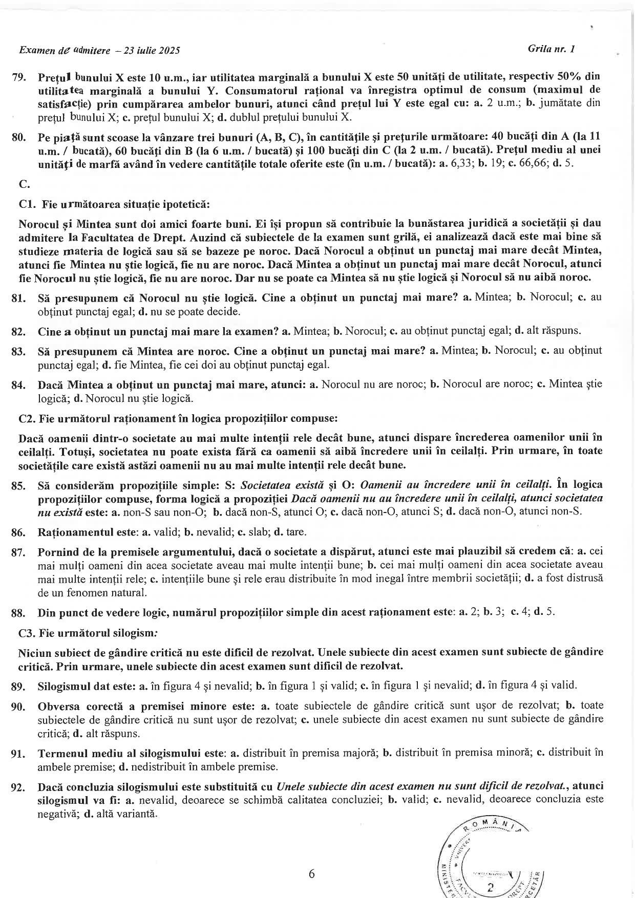 Edupedu.ro redă mai jos subiectele de la concursul de Admitere la Drept – UB 2025, variantele 1-4.