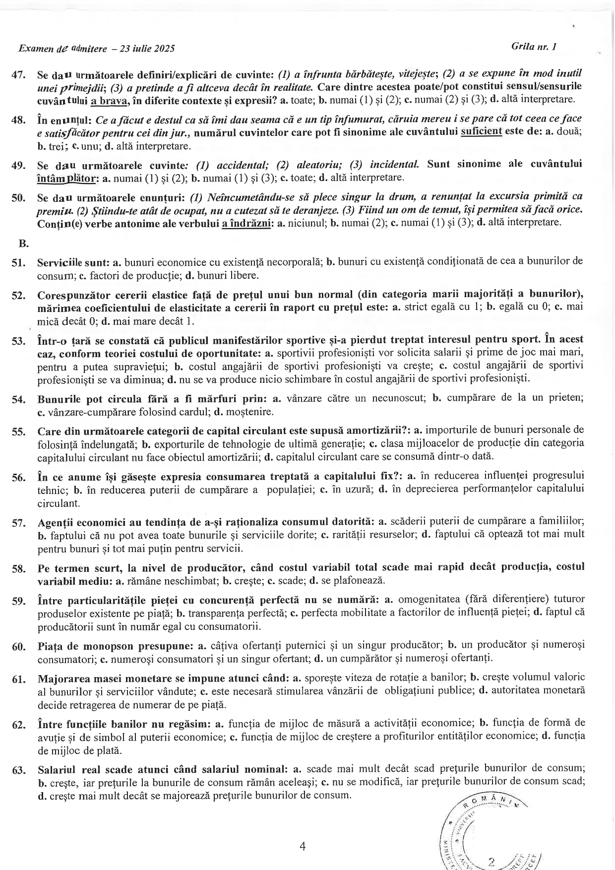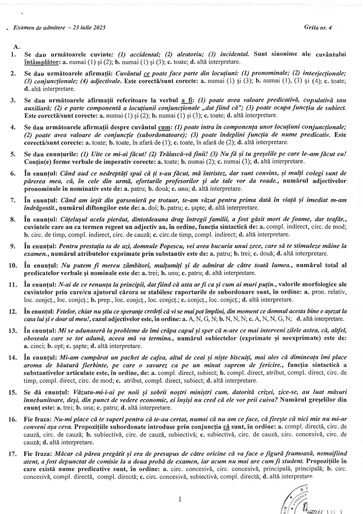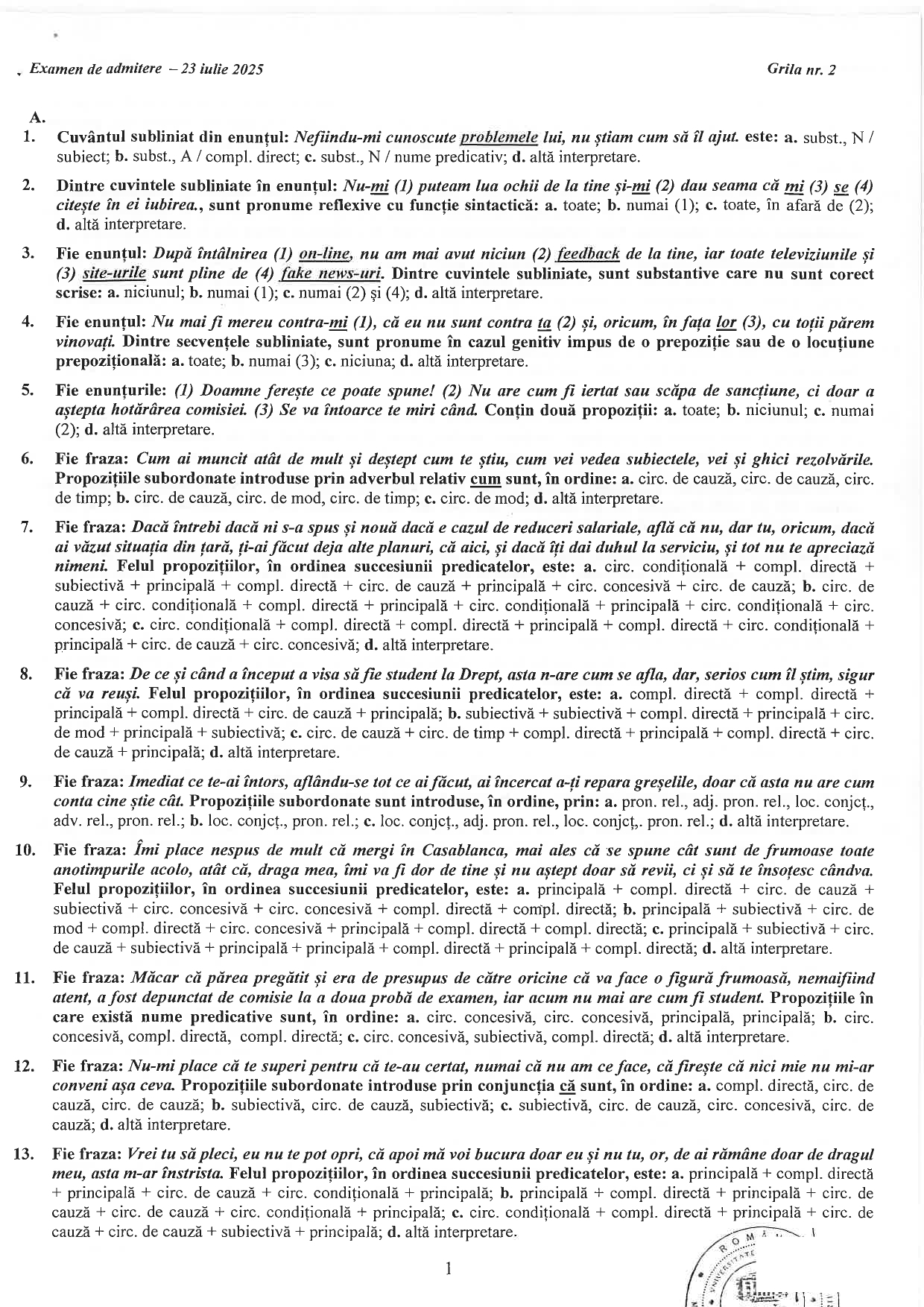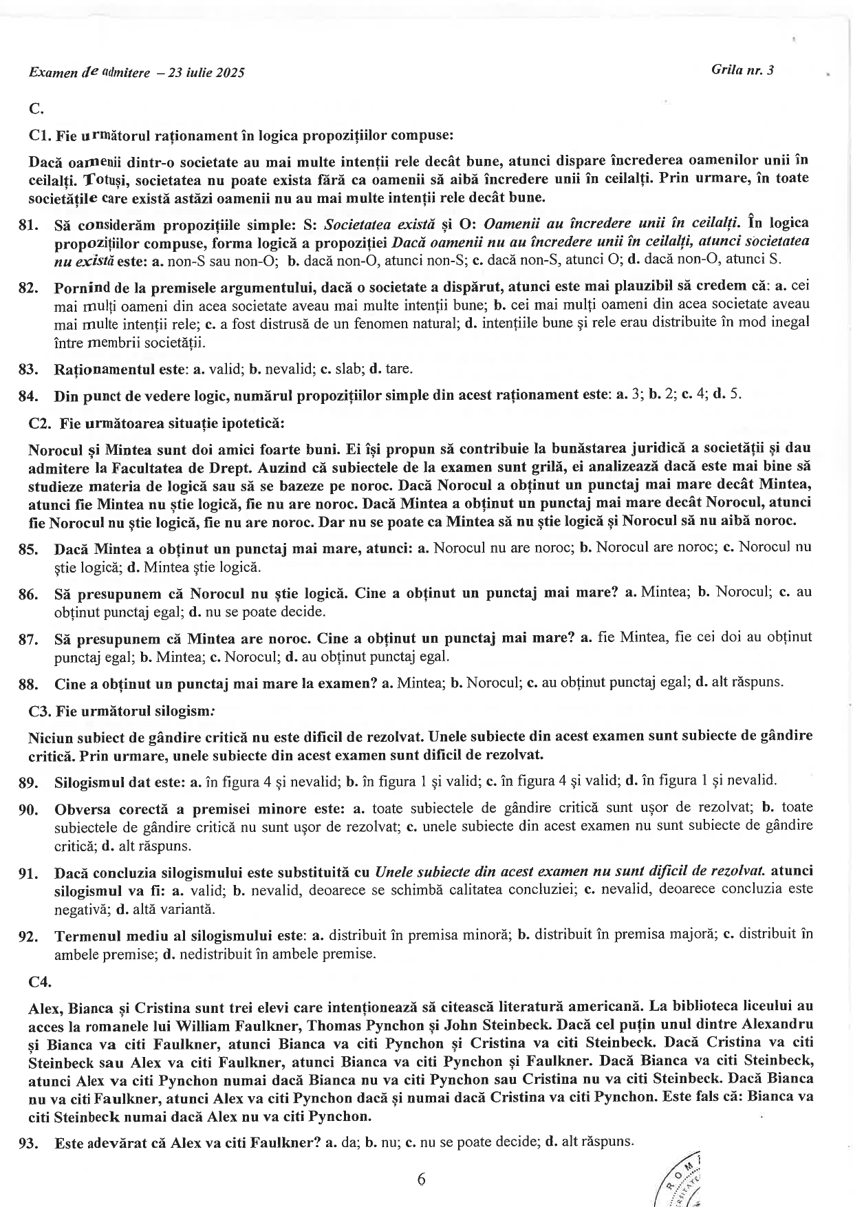 Edupedu.ro redă mai jos subiectele de la concursul de Admitere la Drept – UB 2025, variantele 1-4.