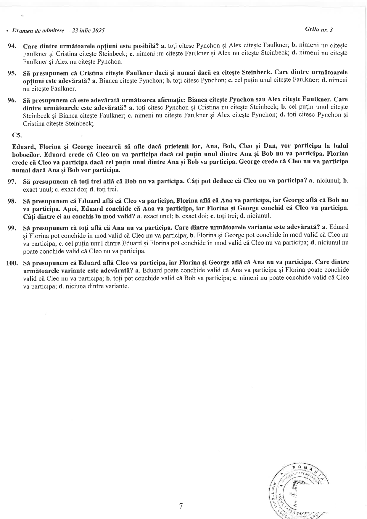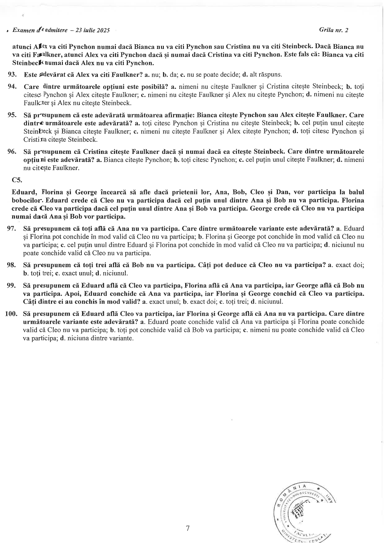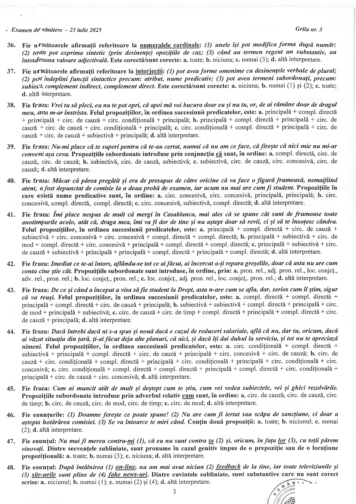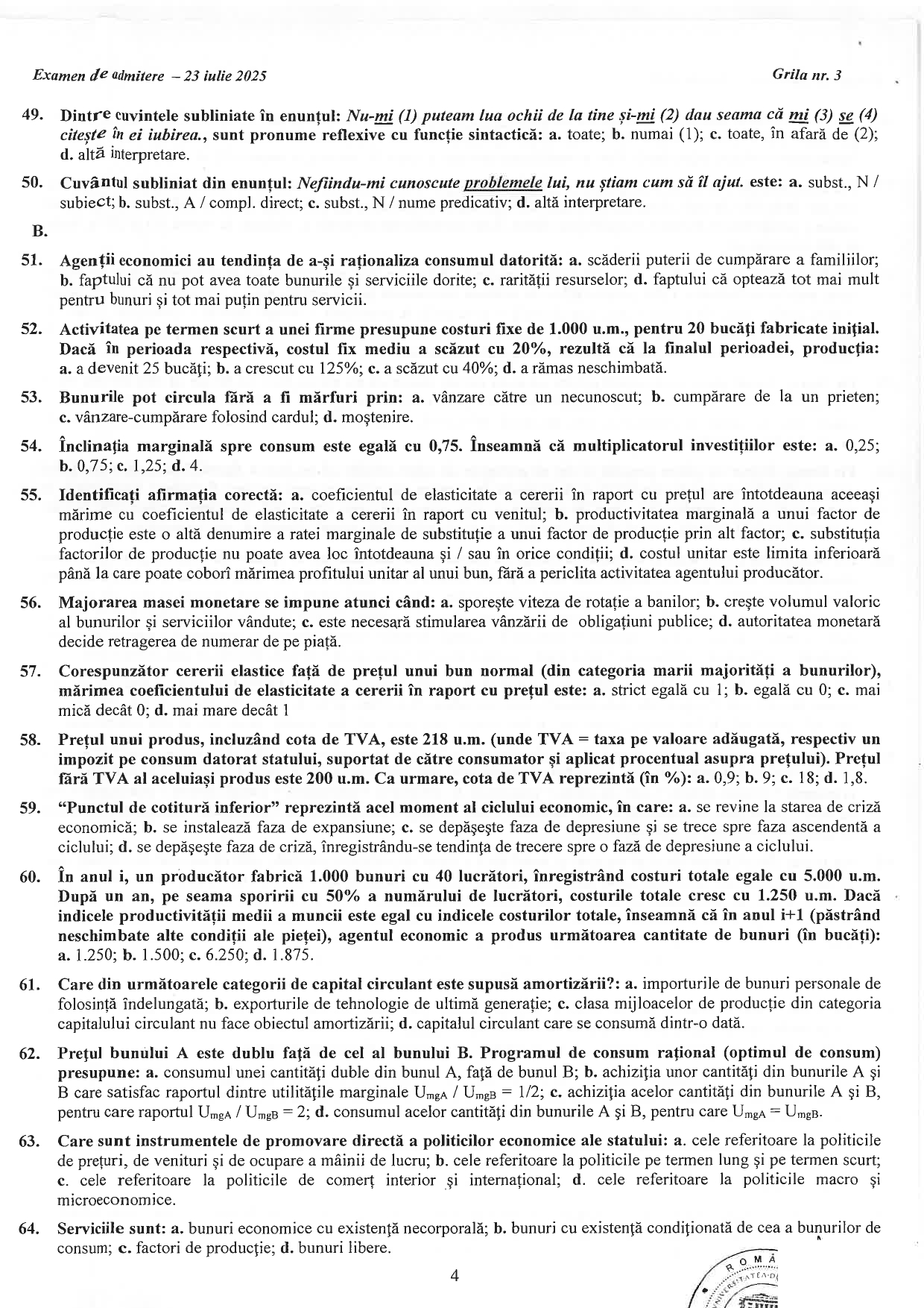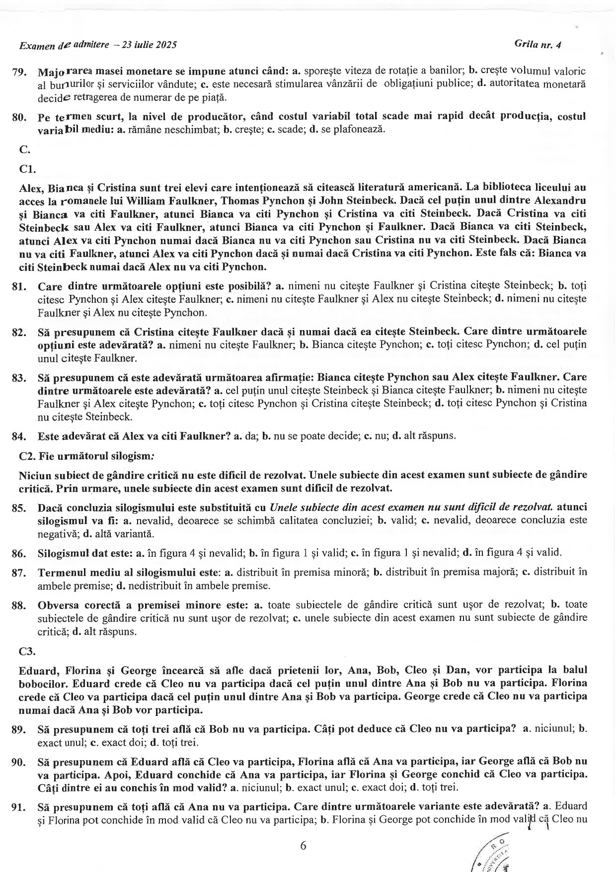 Edupedu.ro redă mai jos subiectele de la concursul de Admitere la Drept – UB 2025, variantele 1-4.