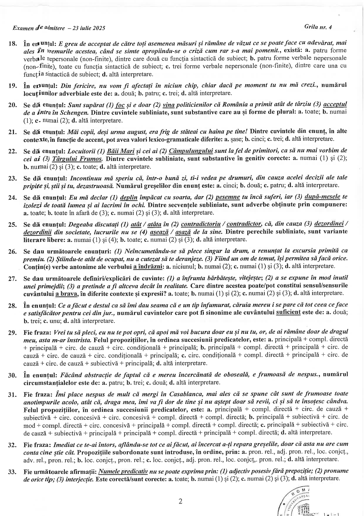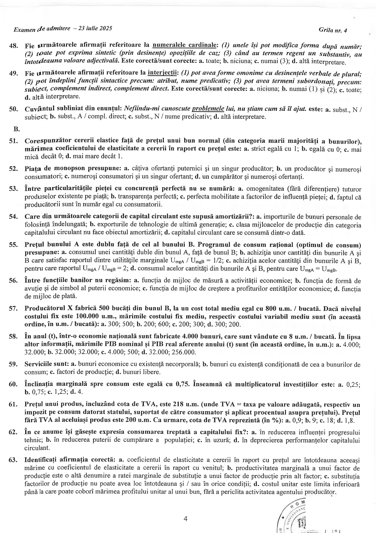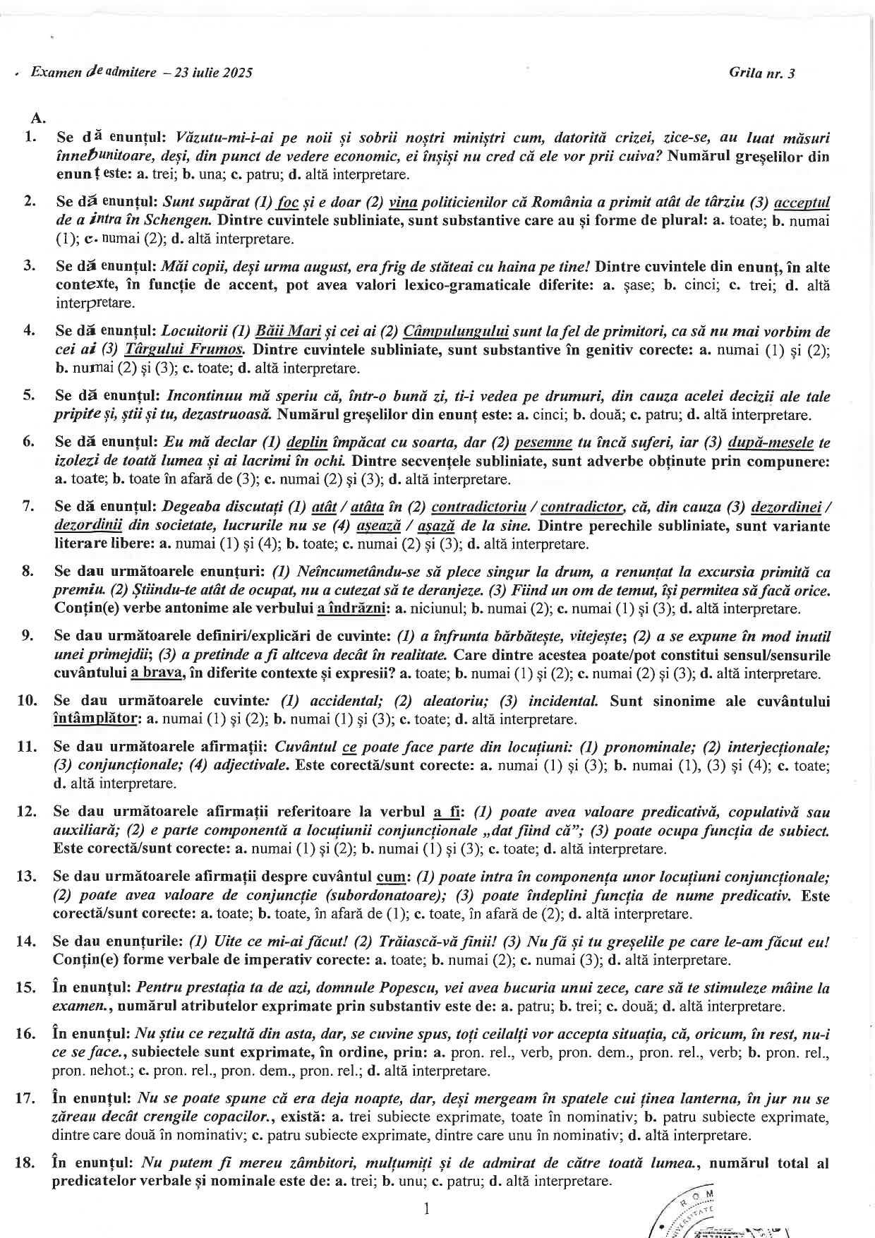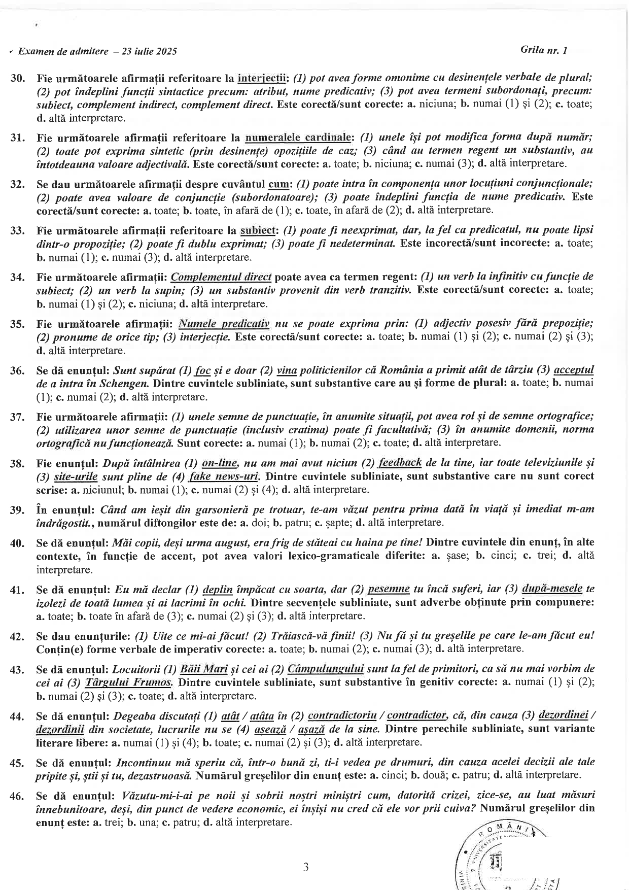 Edupedu.ro redă mai jos subiectele de la concursul de Admitere la Drept – UB 2025, variantele 1-4.