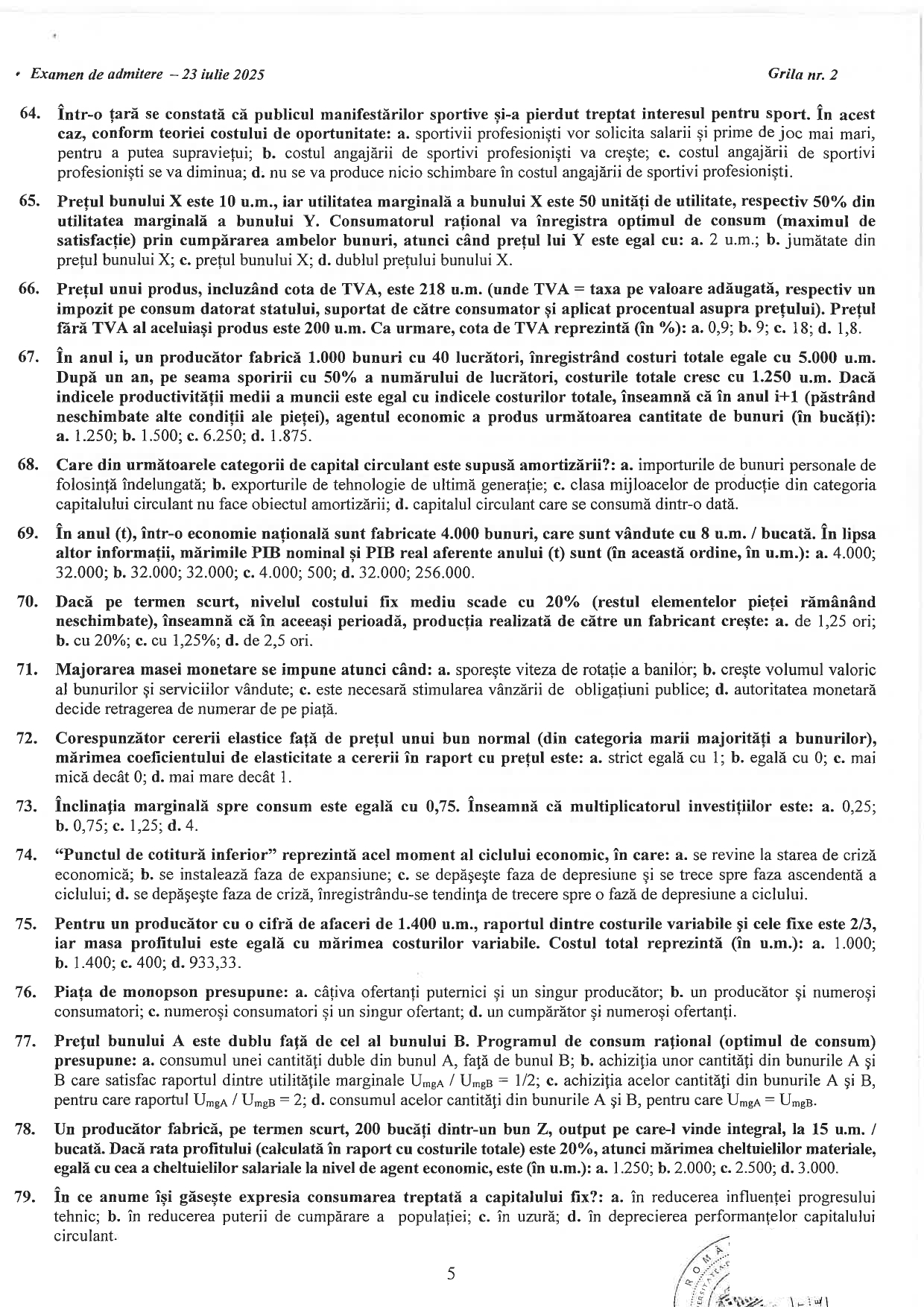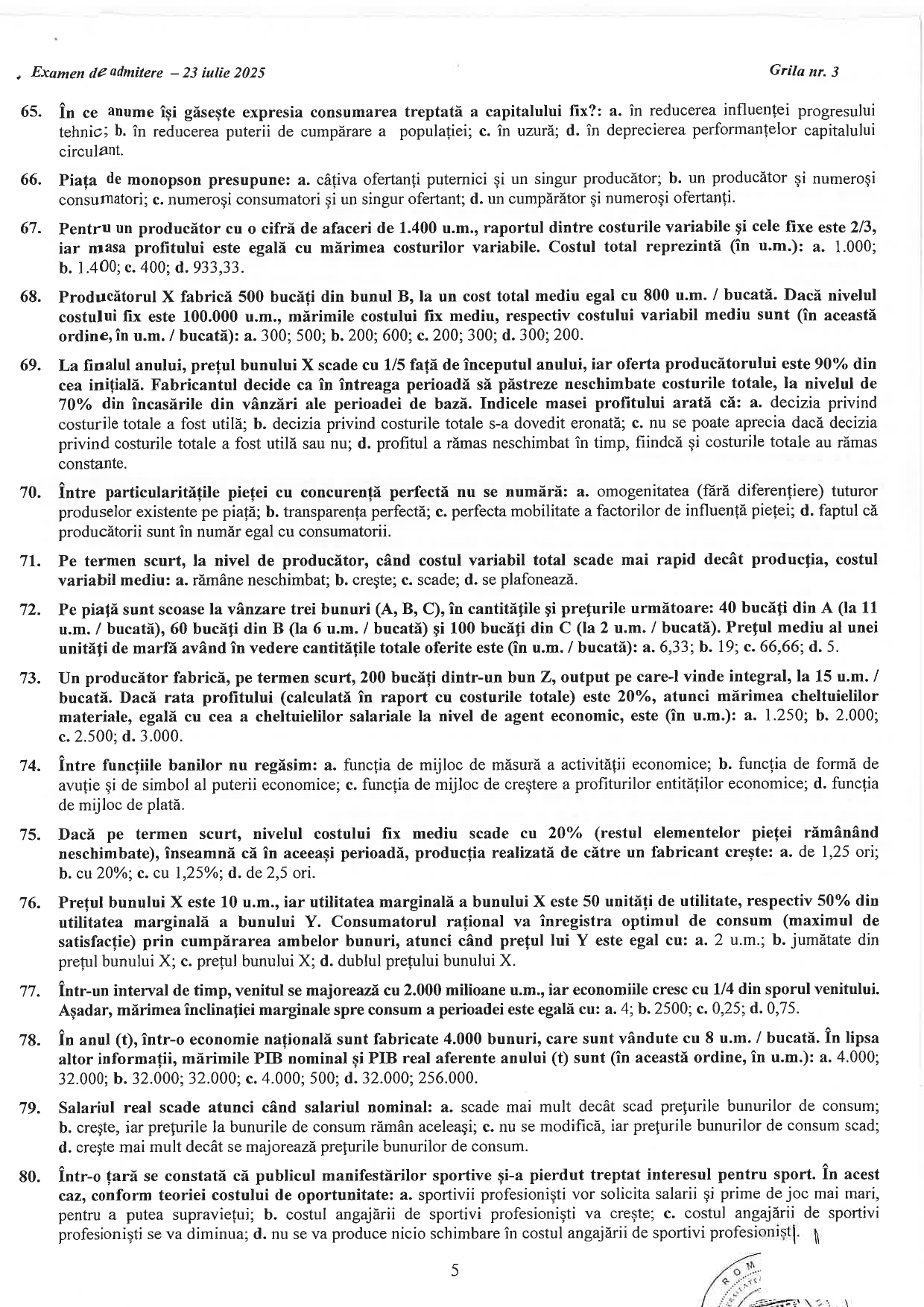 Candidații au avut de rezolvat 100 de întrebări grilă la limba română, economie și gândire critică, în 4 ore. 50 de subiecte au fost la limba română, 30 la economie și 20 la gândire critică, se arată în regulamentul de concurs.