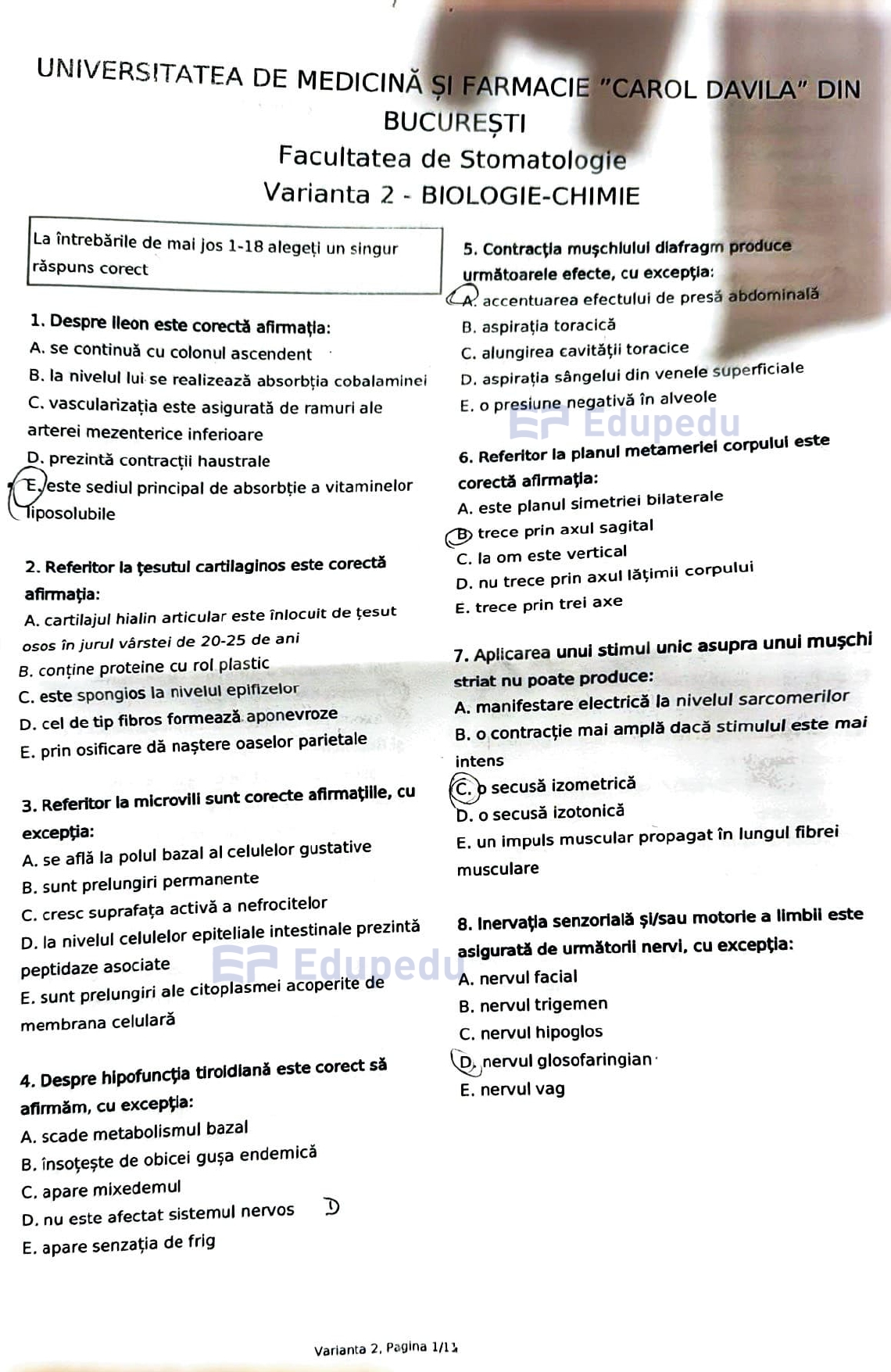 • Disclaimer: însemnările de pe caietul de concurs aparțin candidaților și nu reprezintă neapărat și variantele de răspuns corecte. Răspunsurile la grile pot fi accesate mai jos după subiecte.