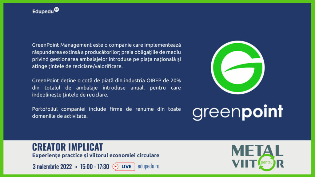 „Sunt campanii pentru care este necesar ajutorul administrației publice locale, fie al administrației centrale”, a declarat Vlad Trușcă, directorul de operațiuni și tranzacții al companiei GreenPoint Management, în cadrul conferinței “Creator implicat – experiențe practice și viitorul economiei circulare”, organizată de Edupedu.ro în cadrul campaniei „Metal pentru Viitor”.