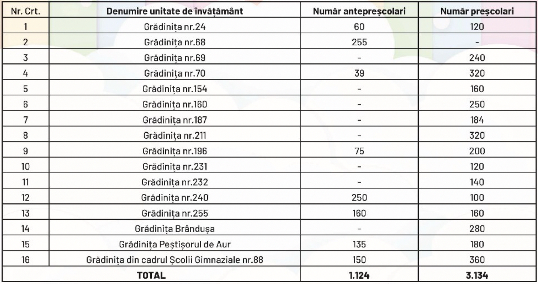 Numărul de locuri pentru Grădinița de vară din sectorul 3, în 2024