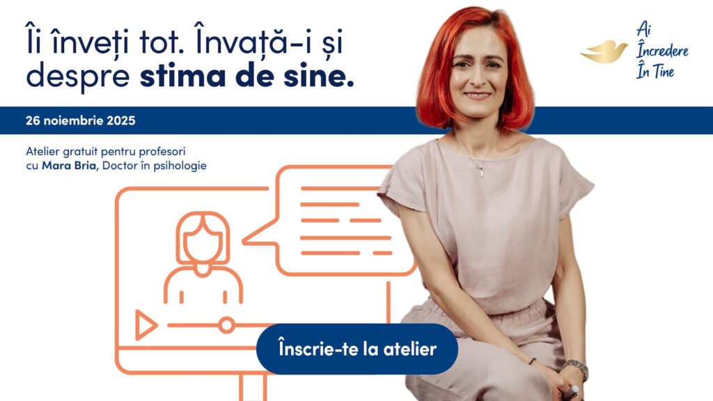 Toți profesorii din România, indiferent de disciplina pe care o predau sau de ciclul de învățământ în care activează, sunt invitați să participe la un atelier online gratuit, susținut de Mara Bria, doctor în psihologie, organizat în cadrul programului „Dove Ai Încredere în Tine”: o inițiativă dedicată educației pentru stima de sine și bunăstare emoțională în școli.