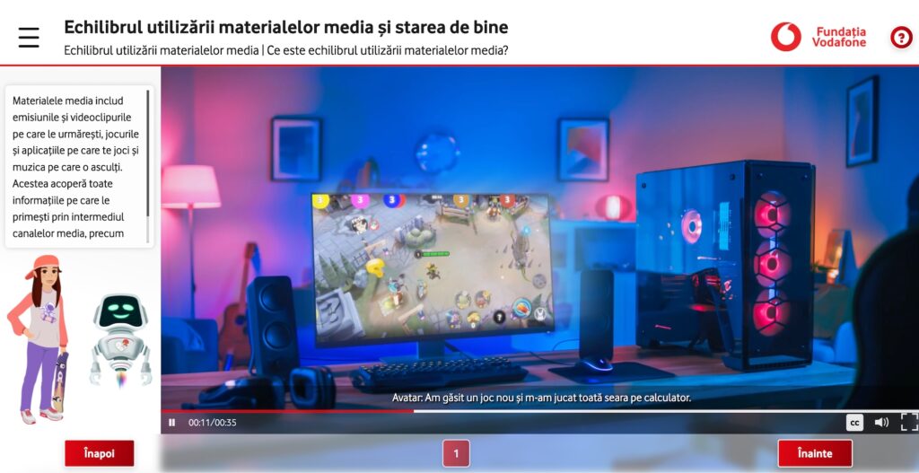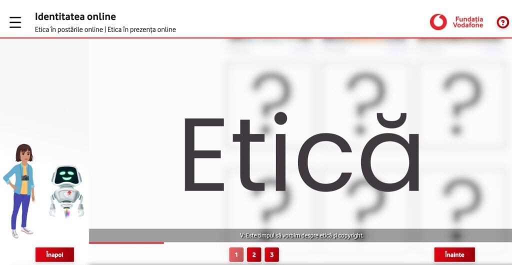 În această activitate de învățare, elevii vor afla informații despre construirea și gestionarea unui profil online, navigarea responsabilă în mediul digital și importanța respectării drepturilor de autor. Ghidați de roboțelul V și personajul Avatar, ei vor descoperi cum activitatea online poate influența eliberarea de dopamină în creier și de ce poate crea dependență. Totodată, vor explora impactul conturilor false asupra mediului online, consecințele nerespectării drepturilor de autor și vor învăța să recunoască comportamentele inadecvate online, dezvoltând abilități pentru a naviga în siguranță pe internet.