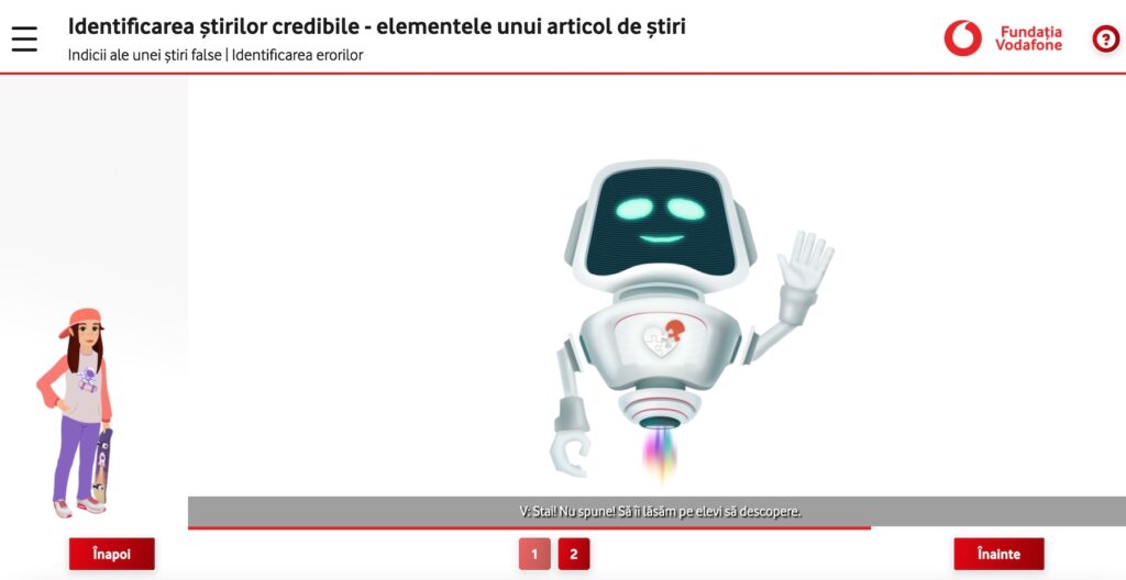 Profesorii le vor putea explica elevilor, cu ajutorul acestei activități multimedia, cum să deosebească știrile credibile de cele false, punând accent pe analiza critică a titlurilor, învățându-i cum sunt structurate articolele de știri și care sunt metodele prin care pot verifica sursele și autenticitatea informațiilor. Vor fi familiarizați cu elementele fundamentale ale unui articol de știri online și vor învăța să recunoască și să evalueze critic conținutul informativ, sponsorizat și pe cel tip clickbait, cultivând astfel abilități esențiale pentru navigarea responsabilă în spațiul online.