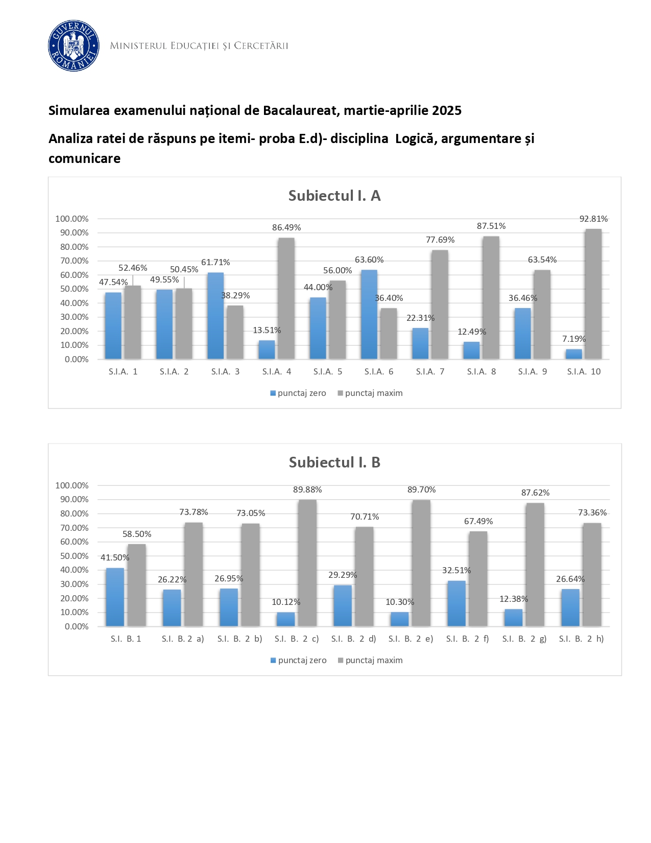 FOTO DOCUMENT Analiza gradului de reușită pe itemi la proba obligatorie – Logică, argumentare și comunicare, simulare BAC 2025: