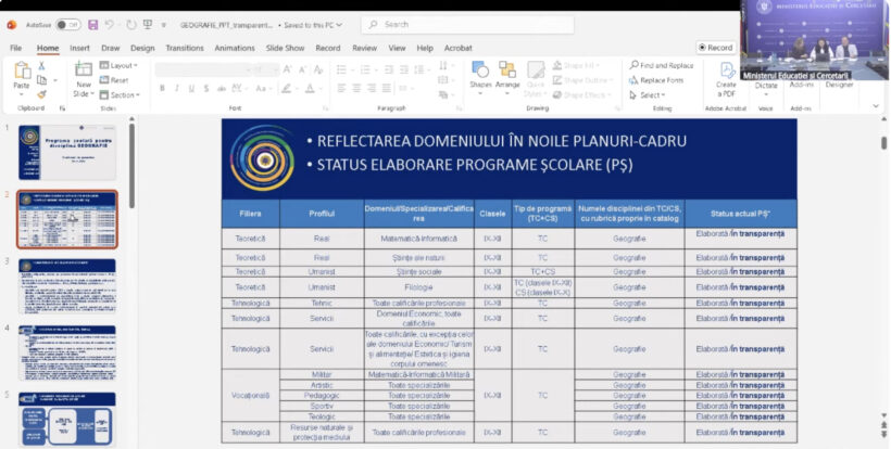 Au fost explicate atât programa pentru Geografie, Trunchi Comun (TC), valabilă pentru toate filierele și profilurile, cât și programa pentru Curriculumul de Specialitate (CS) pentru filiera teoretică, profil umanist, științe sociale (IX-XII) și filologie (IX-X), conform anunțului Ministerului.