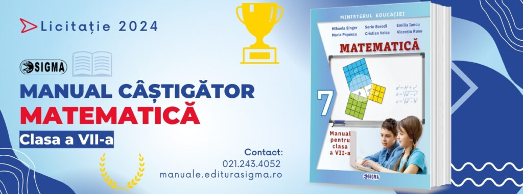 Echipa Editurii Sigma este dedicată să ofere resurse educaționale de cea mai înaltă calitate, gândite pentru a inspira și sprijini învățarea continuă. Profesorii sunt invitați să viziteze website-ul https://editurasigma.ro/ pentru a descoperi manualele câștigătoare și o gamă variată de materiale didactice elaborate cu pasiune și profesionalism, menite să îmbogățească o experiență educațională de calitate.