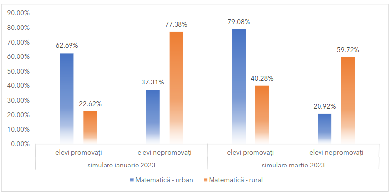 Conform unui raport al ISJ Iași, la Matematică, la simularea organizată de Ministerul Educației, decalajul dintre urban și rural se menține constant, cu o diferență de aproape 40%.