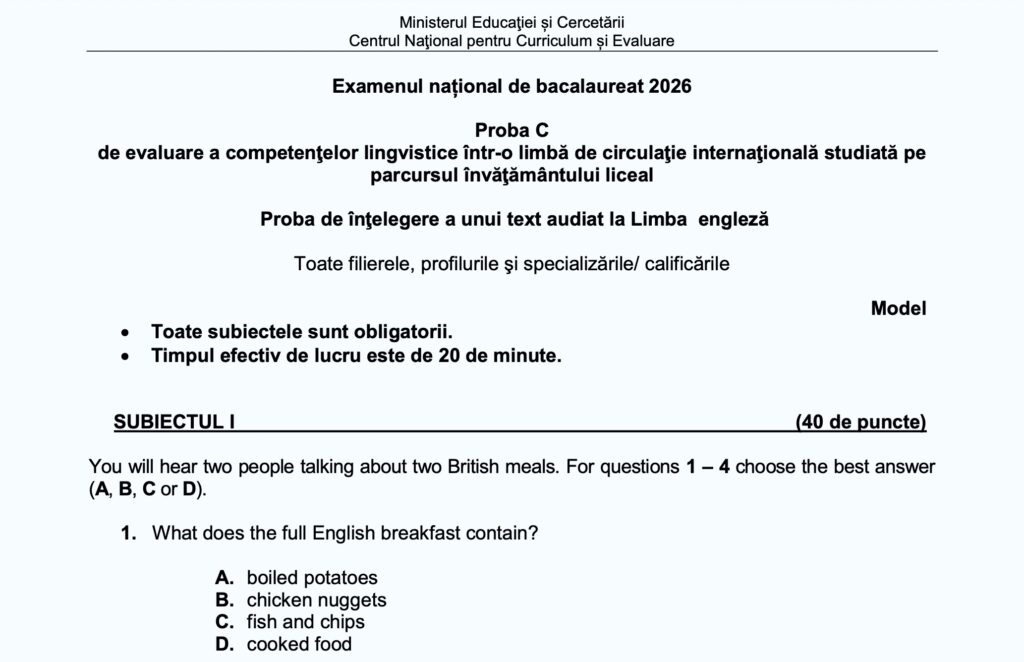 Model de subiect – competențe în limba engleză BAC 2026 AUDIO: