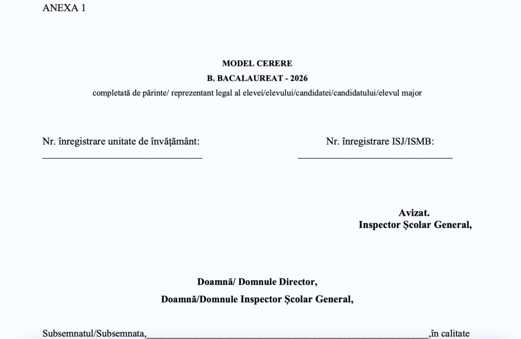 Ministerul Educației și Cercetării a publicat procedura pentru asigurarea egalității de șanse la examenul național de Bacalaureat 2026, pentru elevii cu deficiențe de vedere, deficiențe de auz și tulburări de neurodezvoltare (tulburări din spectrul autist, cu sau fără tulburări asociate, tulburări specifice de învățare, ADHD, tulburare de dezvoltare intelectuală etc.) și modelul de cerere.