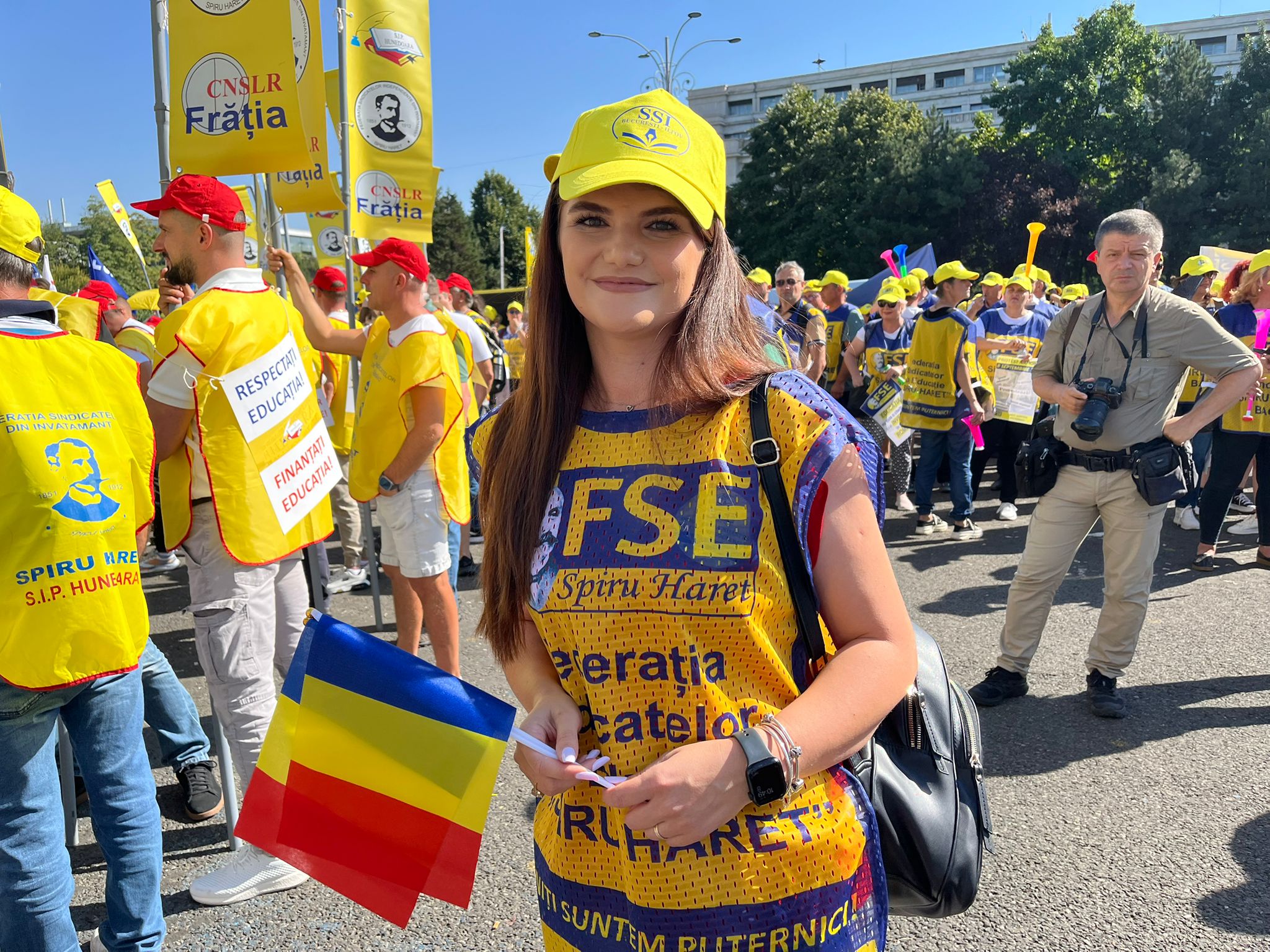 „Chiar acesta este primul an când am intrat în învățământ. Nu mă așteptam să fiu «primită» așa, mi-aș fi dorit să stau acum cu copiii, sunt educatoare si i-am lăsat cu colega pentru a ne exprima nemulțumirile. Am intrat cu gânduri bune, cu gânduri mari, dar mi-am dat seama că am intrat unde nu știam în ce mă bag. Nu suntem susținuți, mă așteptam să primim cardurile de carieră didactică, eu am doi copii acasă, cu salariul meu de debutant nu pot veni de acasă să fac mare lucru cu copiii pe care o să îi educ în același timp. Și copiii mei abia au intrat în învățământ: am un copil creșă și unul la grădiniță”.