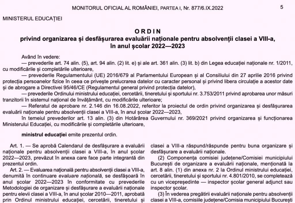Ordinul privind organizarea și desfășurarea Evaluării Naționale 2023 poate fi consultat mai jos: