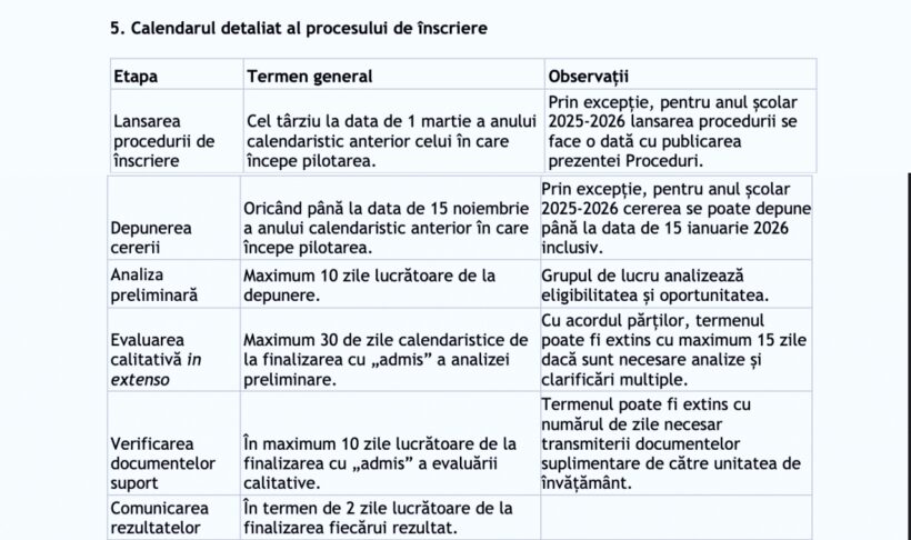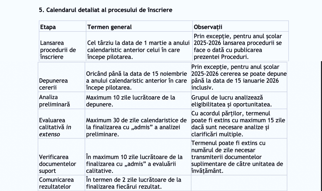 - Unitățile de învățământ respinse nu pot contesta rezultatul evaluării preliminare, dar pot relua procesul de înscriere cu respectarea termenelor limită.