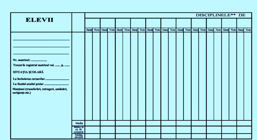 - Catalog învățământ gimnazial;