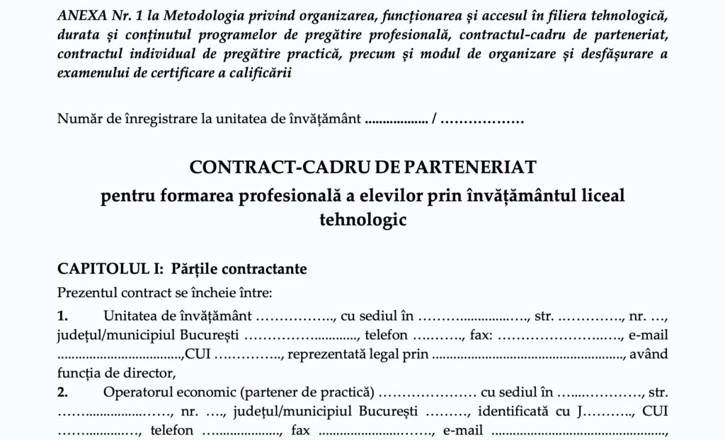 DOCUMENT Contractul-cadru de parteneriat pentru formarea profesională a elevilor din învățământul liceal tehnologic
