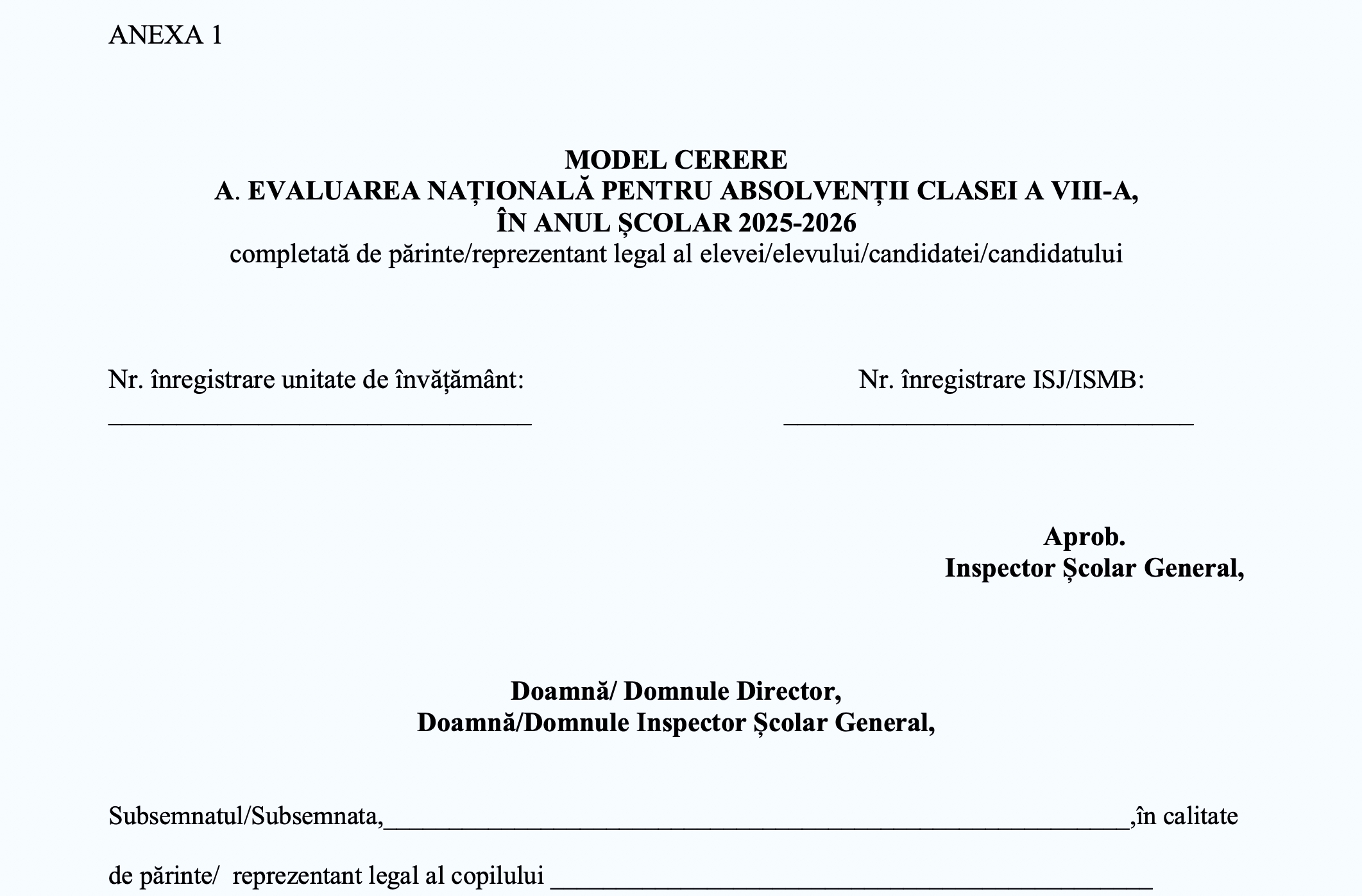 Cerere egalizare de șanse Evaluare Națională 2026