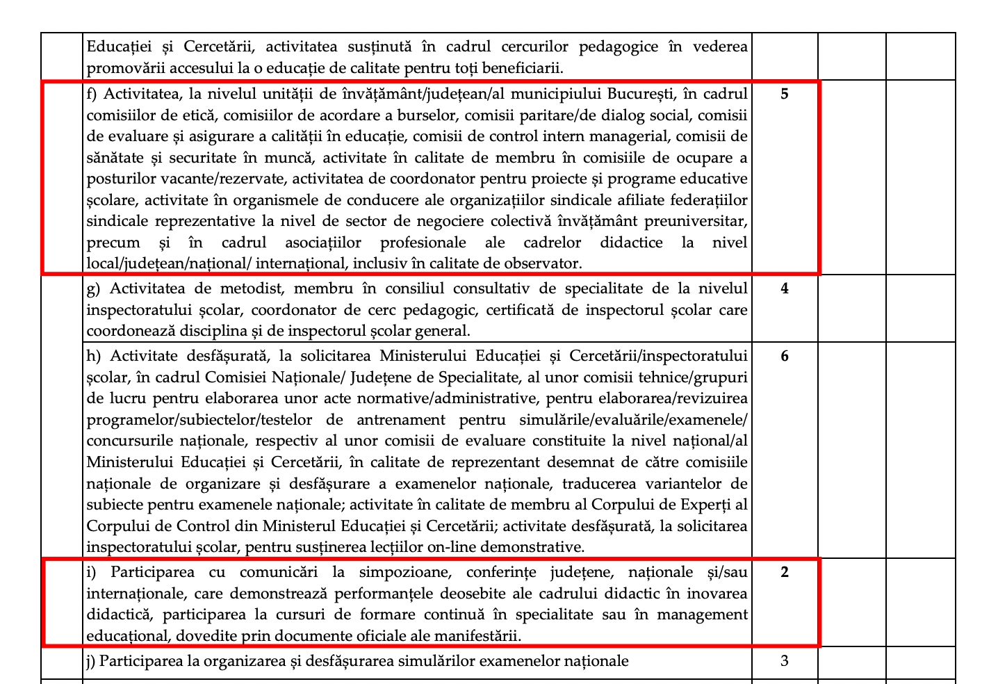Anul trecut, profesorii care făceau parte din comisiile din școli erau punctați, pentru activitatea lor, cu 5 puncte. Tot în 2024, cadrele didactice care participau la simpozioane și conferințe (județene, naționale, internaționale) primeau 3 puncte.