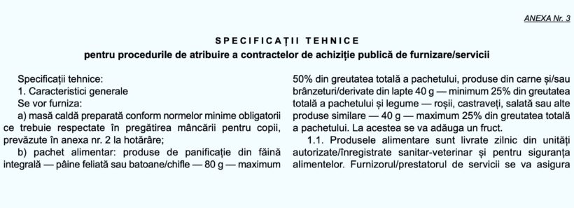 Specificații tehnice pentru procedurile de atribuire a contractelor de achiziție publică de furnizare/servici – Programul național Masă sănătoasă pe 2026