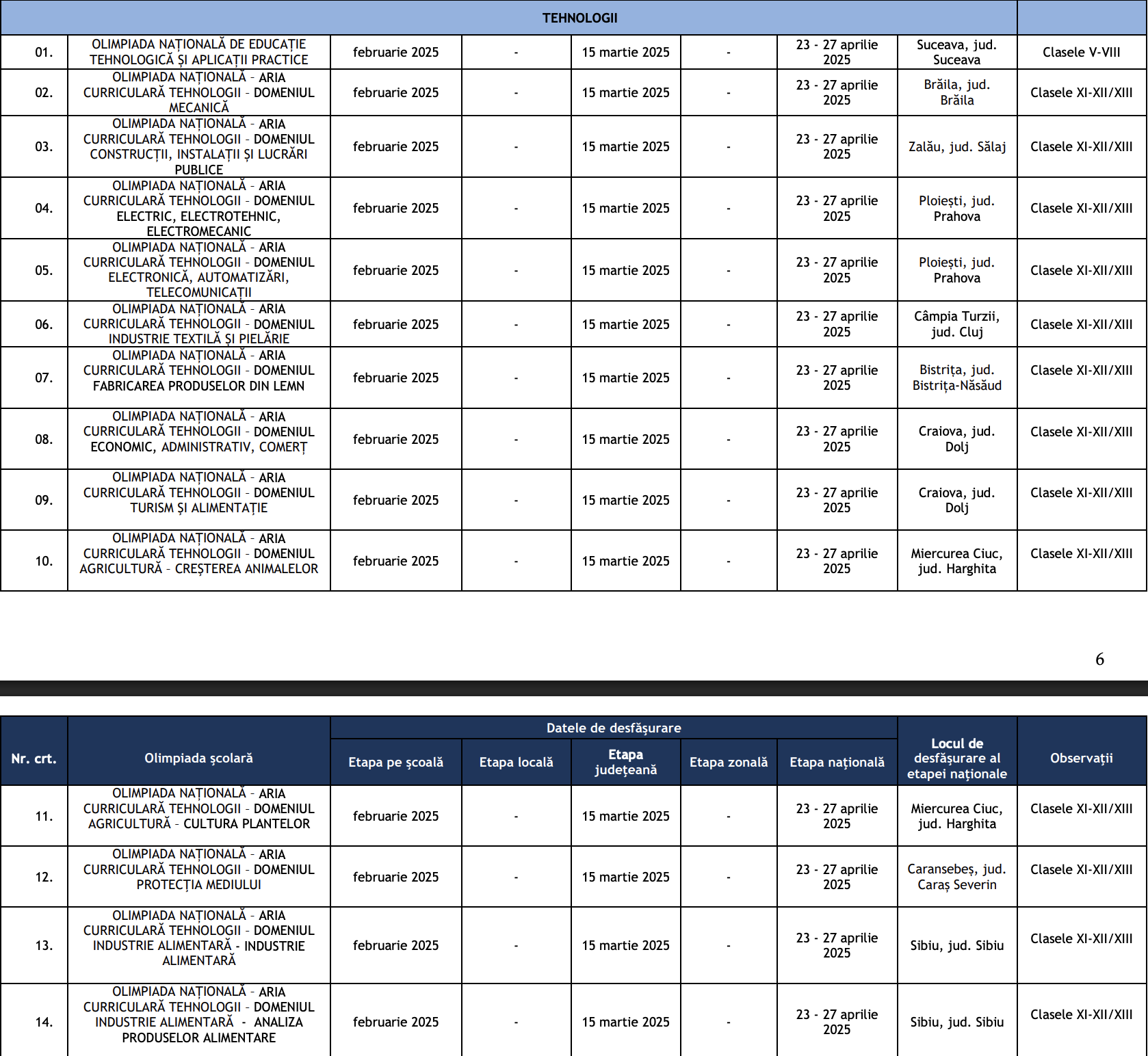 - Potrivit calendarului olimpiadelor școlare 2025, etapa națională a olimpiadei de discipline tehnice va avea loc pe 23-27 aprilie pentru toate disciplinele, însă în orașe diferite: