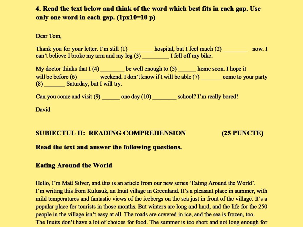 Subiectele și răspunsurile corecte de la etapele locale din județul Suceava ale olimpiadei de limba engleză (ONLE) 2024, organizate recent în mai multe centre la nivelul județului, au fost publicate de Școala 1 din Suceava pe site-ul propriu.