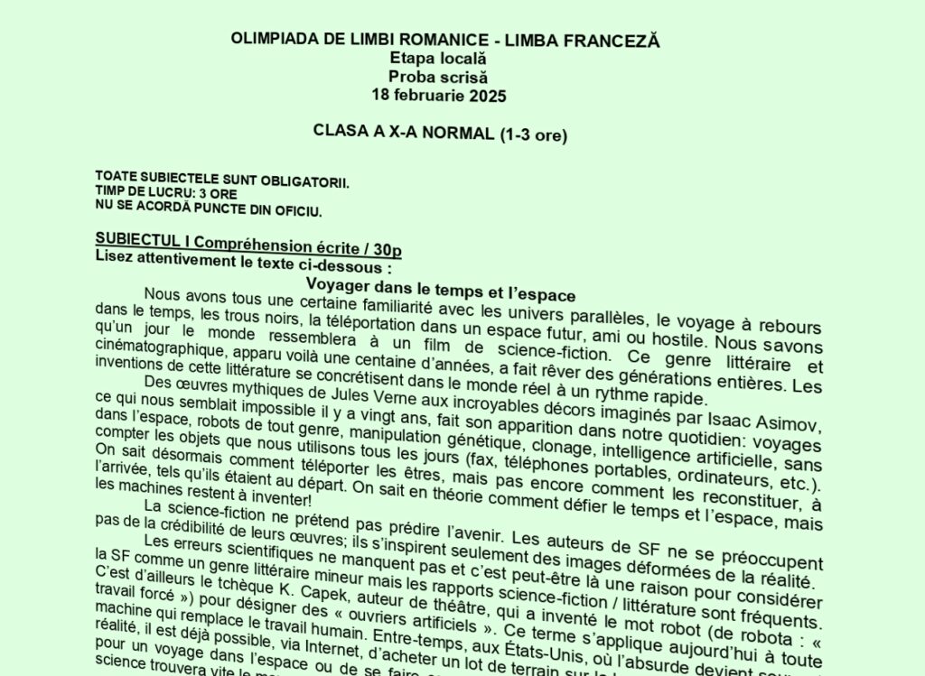 - Vezi și subiectele și bareme de corectare pentru clasele VII-XII la etapa județeană a olimpiadei de Limba franceză, de pe 23 martie 2024.