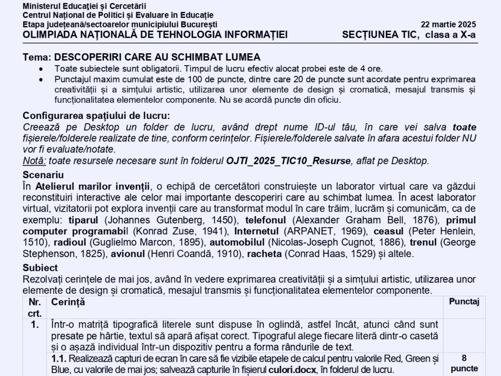 FOTO DOCUMENT DESCARCĂ Subiect OJTI 2025, clasa a X-a: