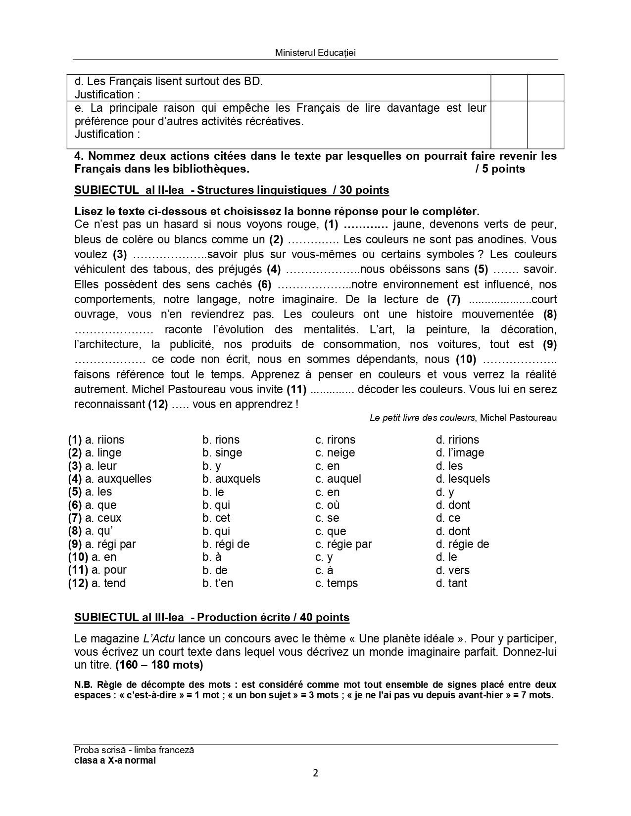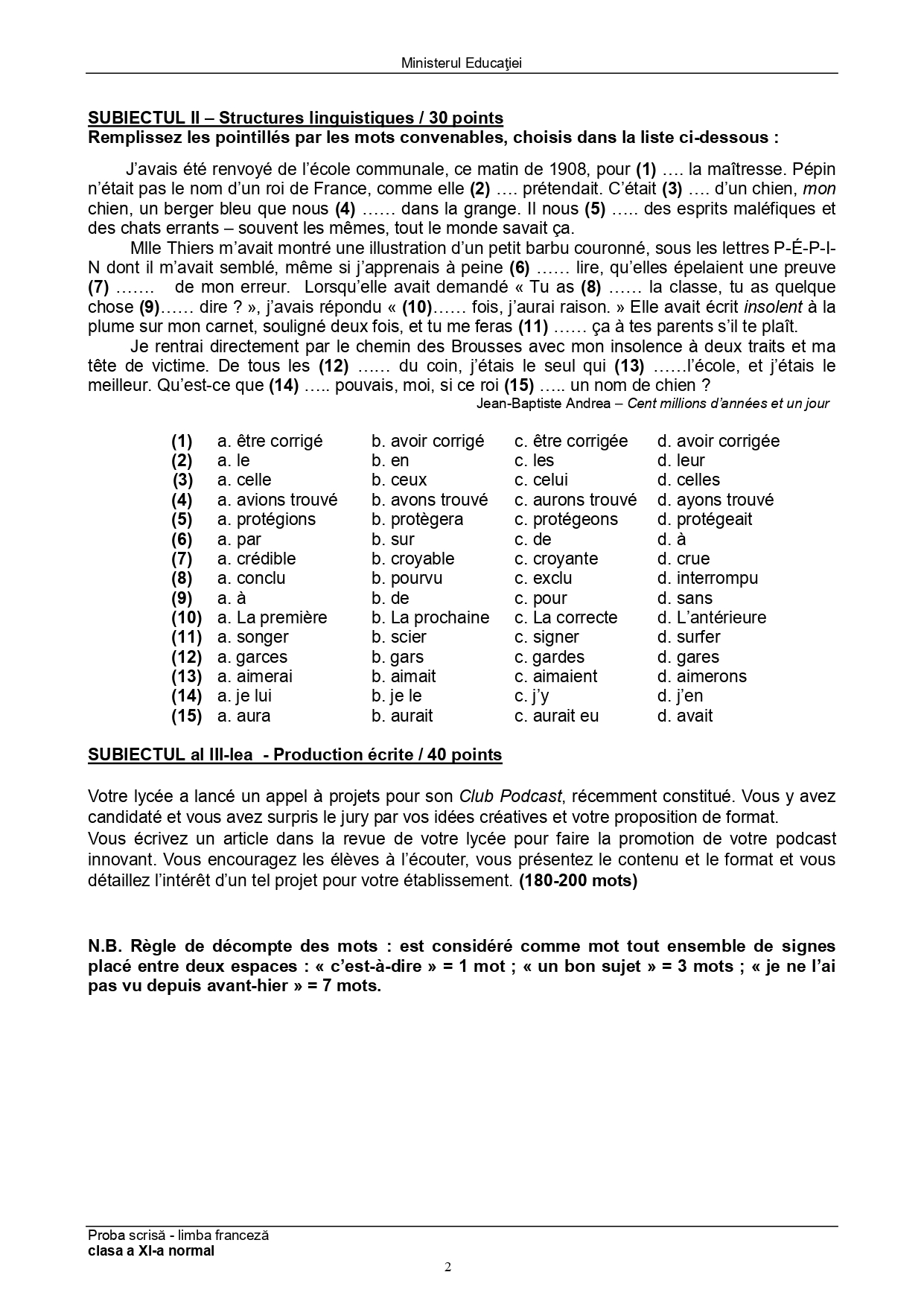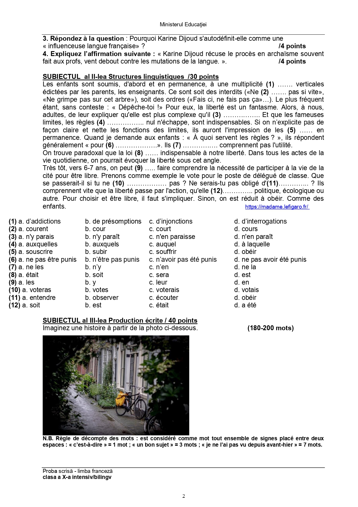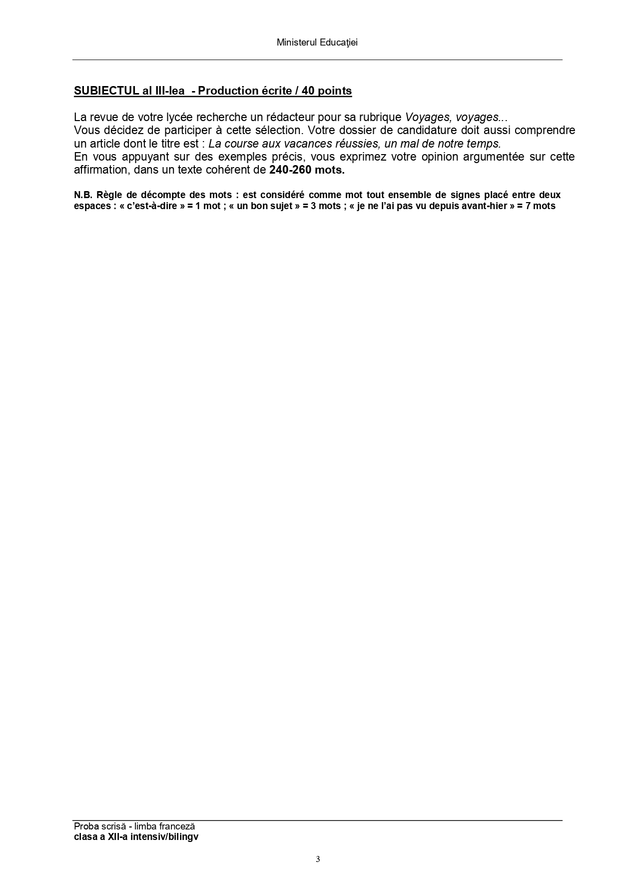Subiect – clasa a XI-a Bilingv:
