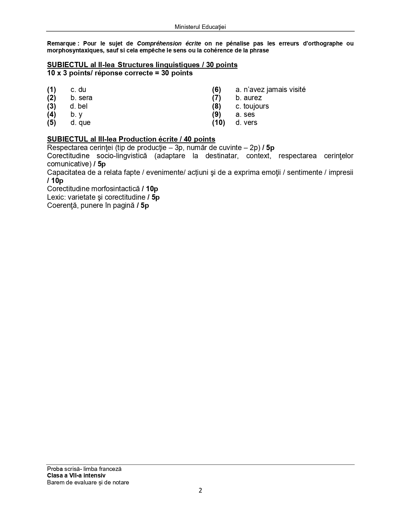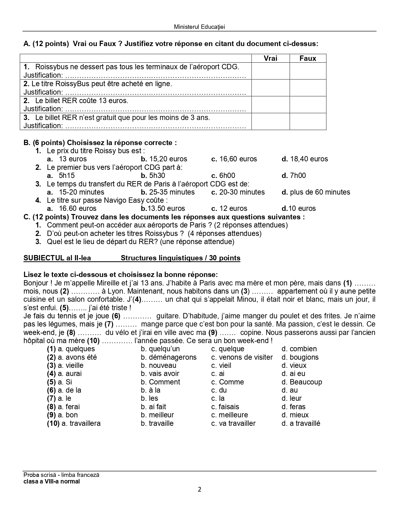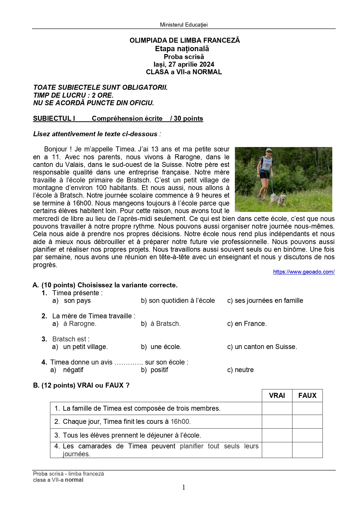 Subiect – clasa a VII-a Bilingv: