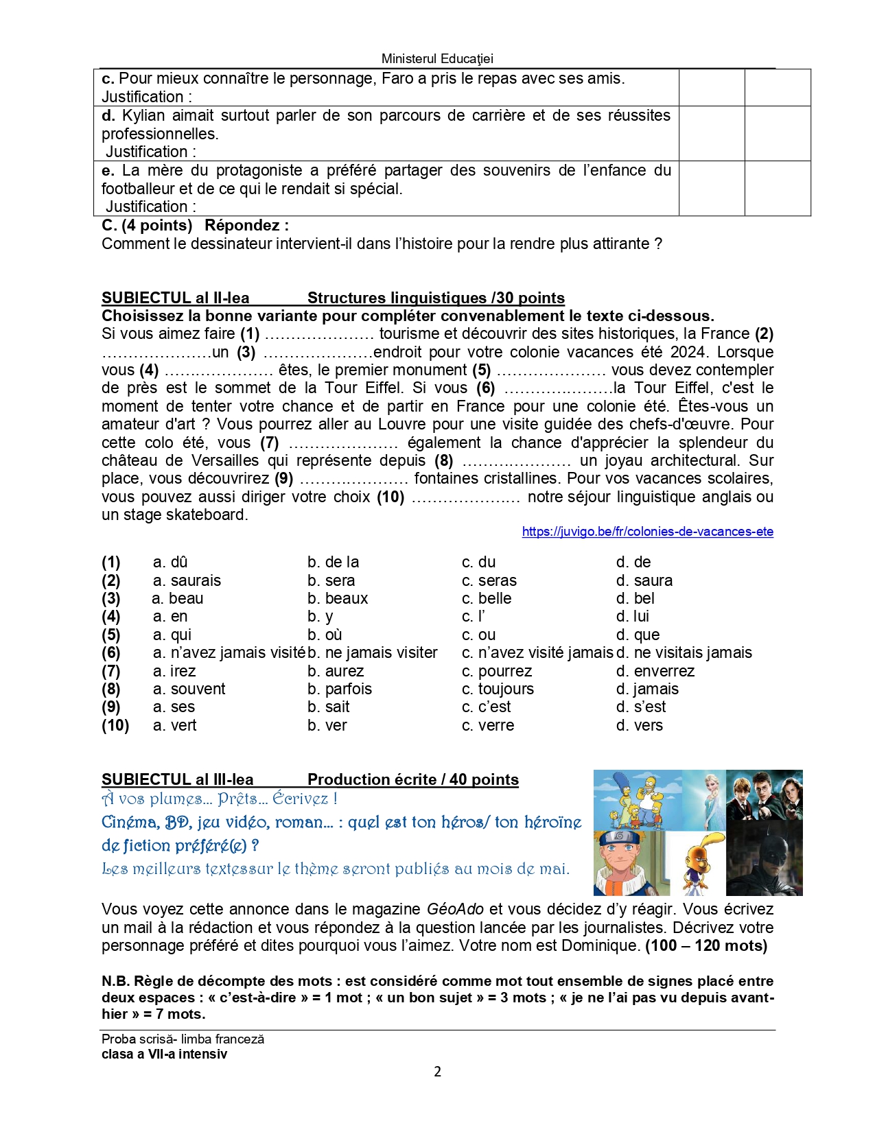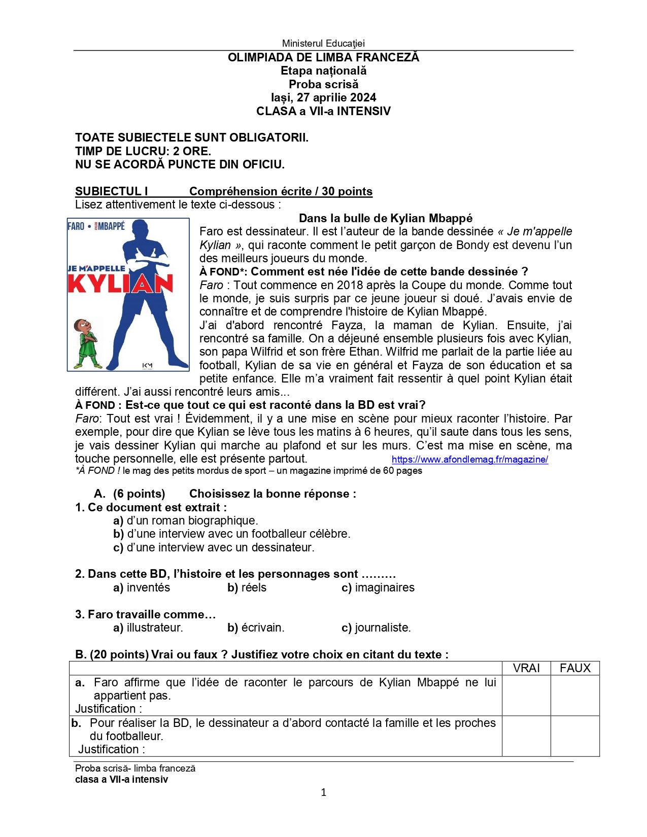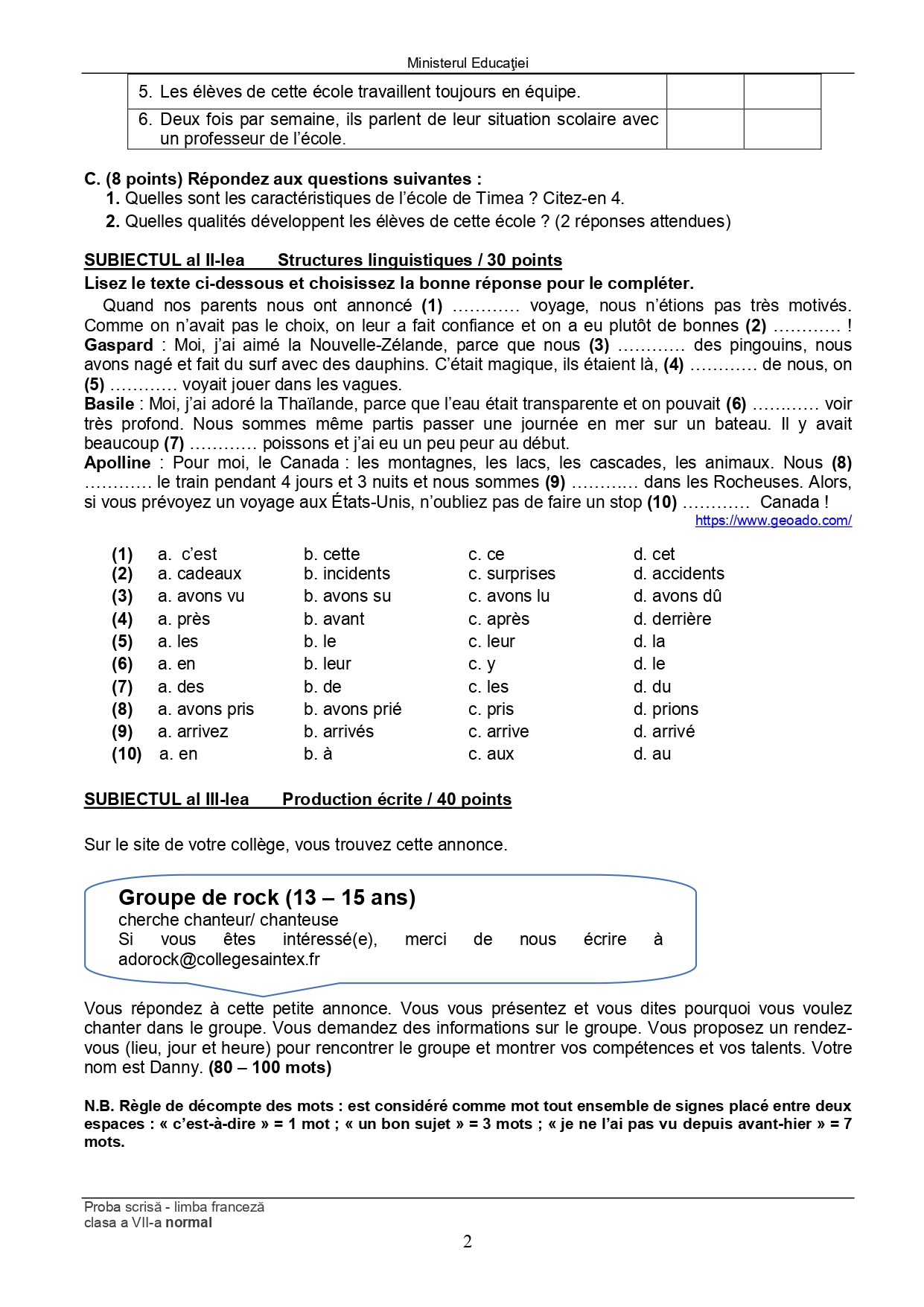 Subiect – clasa a VII-a Bilingv: