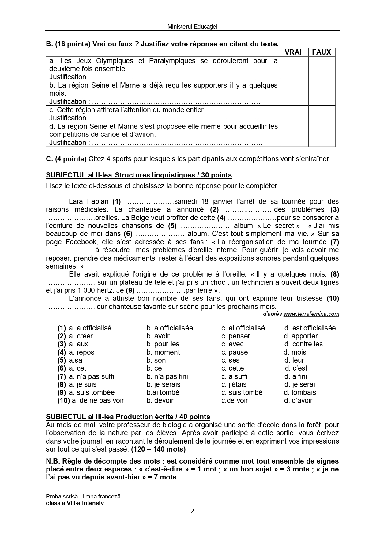 Subiect – clasa a VIII-a Bilingv: