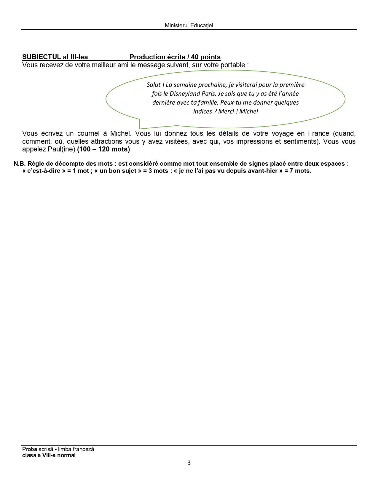 Subiect – clasa a VIII-a Normal: