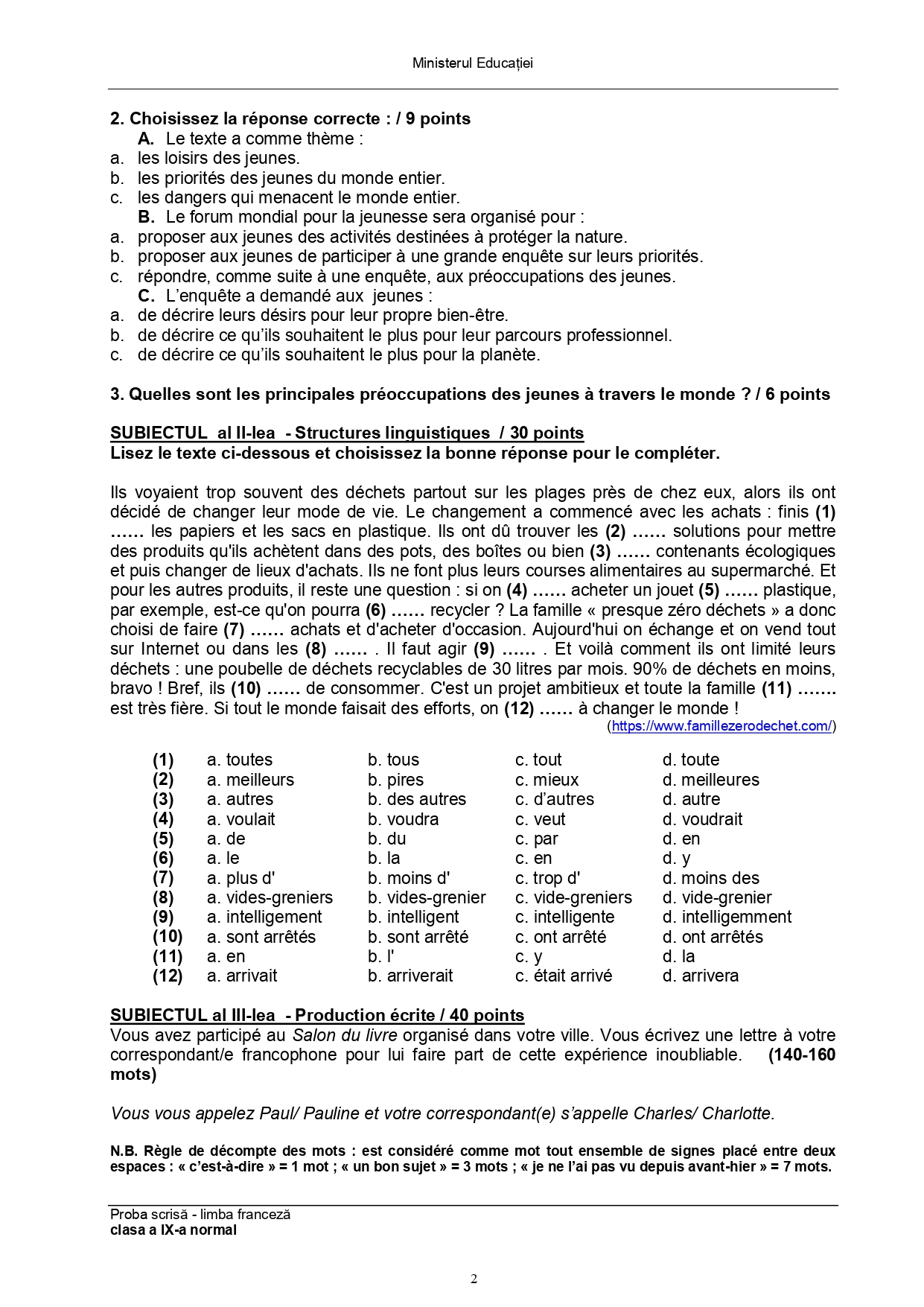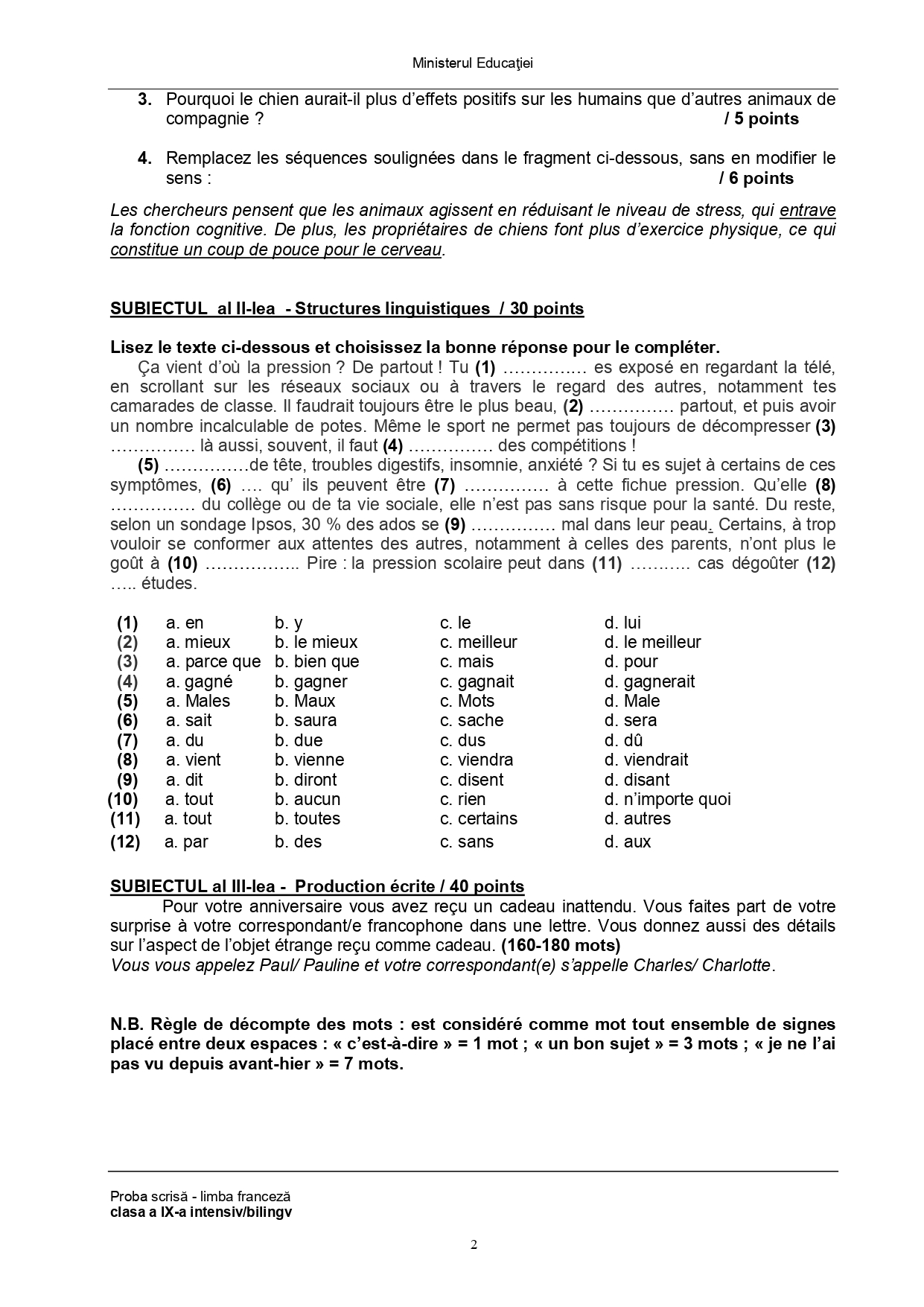 Subiect – clasa a IX-a Bilingv: