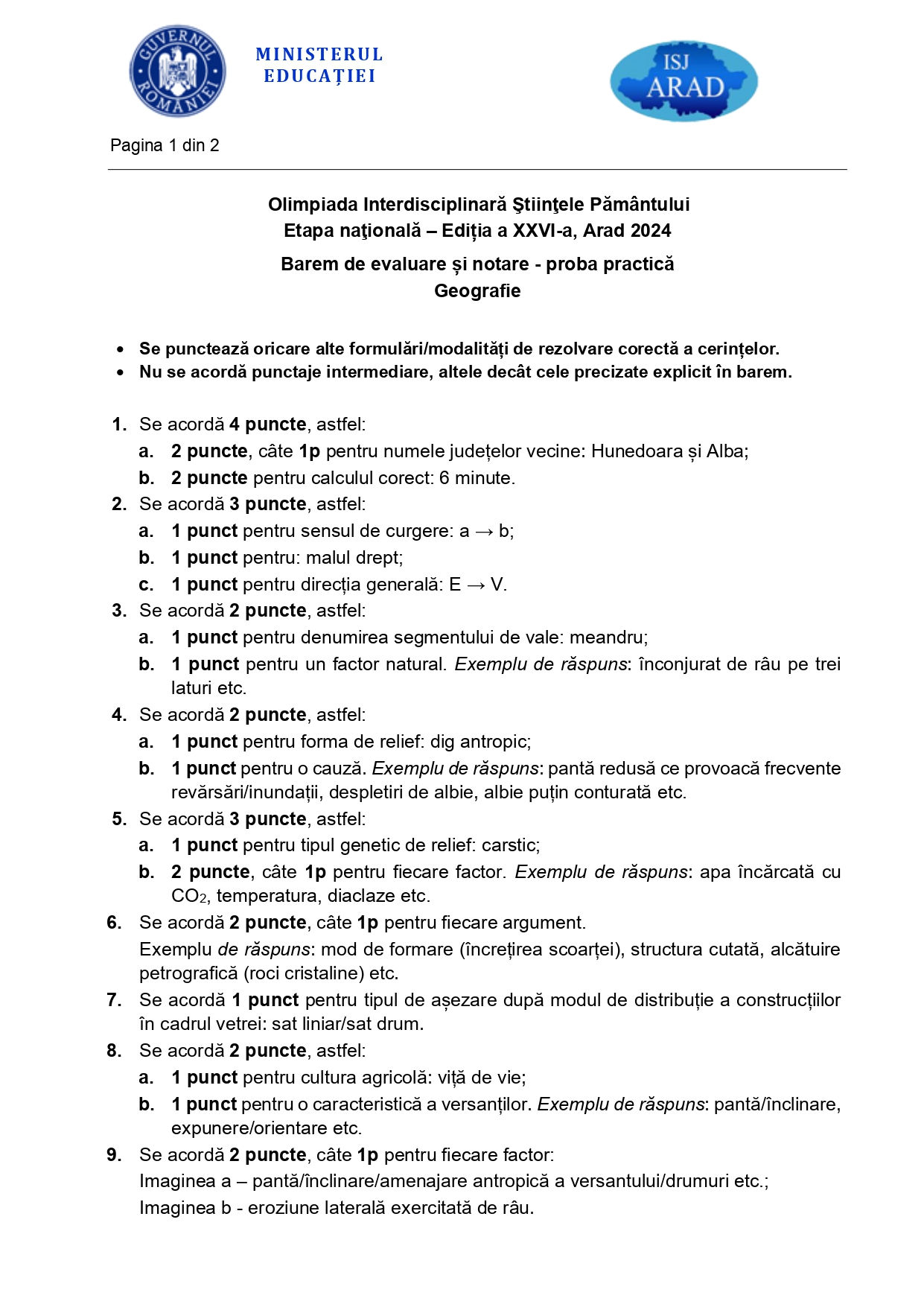 DOCUMENTE Subiecte și bareme ONISP 2024 – etapa națională Arad: