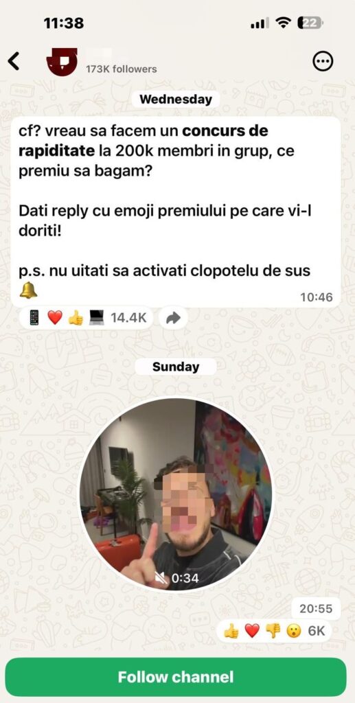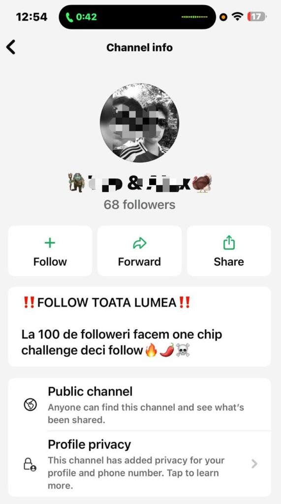 Spre deosebire de alte platforme care le permit părinților să seteze limite și să filtreze conținutul, WhatsApp nu oferă nicio opțiune reală de control parental asupra canalelor accesate de copii. Nu există posibilitatea de a restricționa vizibilitatea anumitor canale, de a bloca recomandările sau de a filtra conținutul în funcție de vârstă. Copilul are, practic, acces liber și nelimitat la orice tip de conținut este distribuit public, iar această lipsă de protecție este un semnal clar de vulnerabilitate.