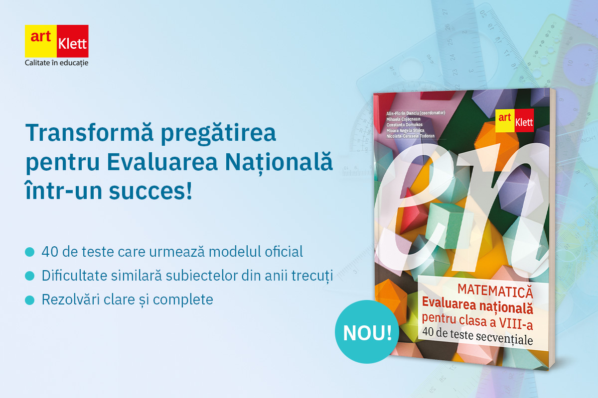 Cu sprijinul potrivit, fiecare elev poate promova examenul, iar culegerea coordonată de Alin-Florin Danciu, Matematică. Evaluarea națională pentru clasa a VIII-a. 40 de teste secvențiale, Editura Art Klett, 2025, a fost gândită să le fie la îndemână profesorilor și elevilor, oferindu-le încredere și rezultate pe măsura muncii lor.