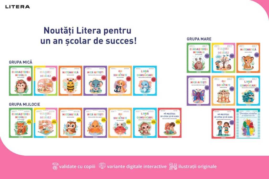 Noile auxiliare pentru grădiniță propuse de Editura Litera Educațional pentru anul școlar 2025 – 2026 au fost concepute cu grijă, testate cu atenție și construite cu respect atât pentru copil, cât și pentru profesorul care îi ghidează primii pași în învățare. Echipa Litera Educațional a colaborat cu profesori dedicați, logopezi, psihologi și ilustratori talentați pentru a crea materiale care să fie nu doar utile, ci și atractive, relevante și prietenoase.
