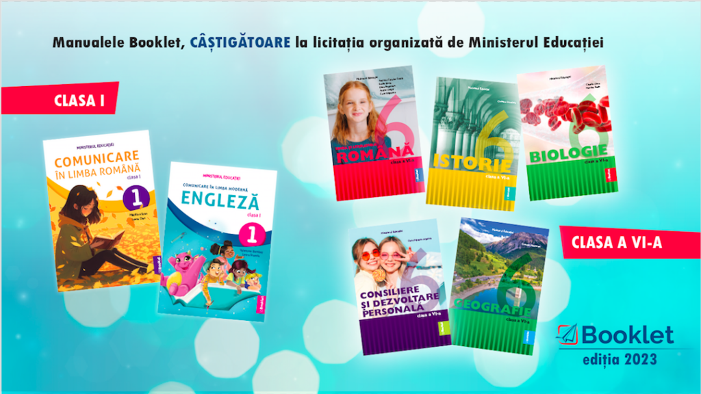 Anul școlar 2023-2024 începe cu manuale noi! Editura Booklet s-a numărat printre cei 22 de participanți la licitația publică pentru manuale organizată de Ministerul Educației. Toate cele 11 manuale Booklet pentru clasele I, a II-a și a VI-a au fost declarate câștigătoare. Anul acesta, aproximativ 450.000 de manuale vor ajunge în ghiozdanele elevilor, începând din septembrie. Din 11 iulie, cadrelor didactice din învățământul primar și gimnazial le revine un rol extrem de important – acela de a alege manualele noilor generații de elevi de pe site-ul Ministerului.