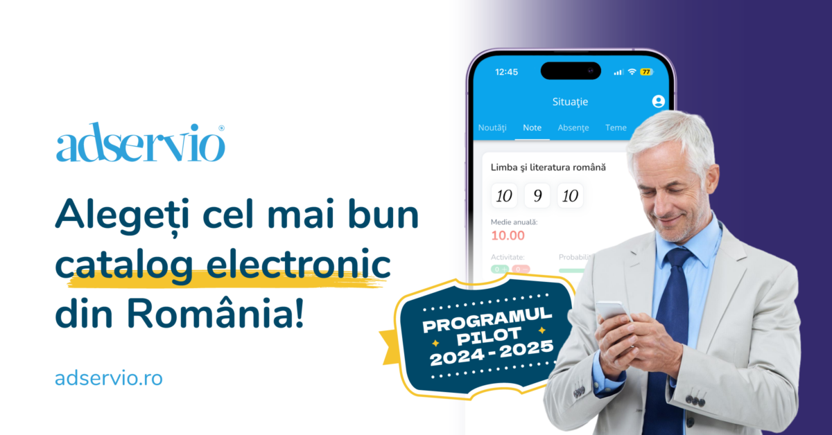 Din fericire, aveți oportunitatea să vă bucurați de toate aceste beneficii chiar acum! Ministerul Educației a lansat înscrierile în programul de pilotare exclusivă a catalogului electronic pentru anul școlar 2024-2025. Ca să vă înscrieți în program, alegeți Adservio, cea mai bună soluție de pe piață, apoi completați formularul oficial primit prin ISJ, până pe 5 iulie 2024.