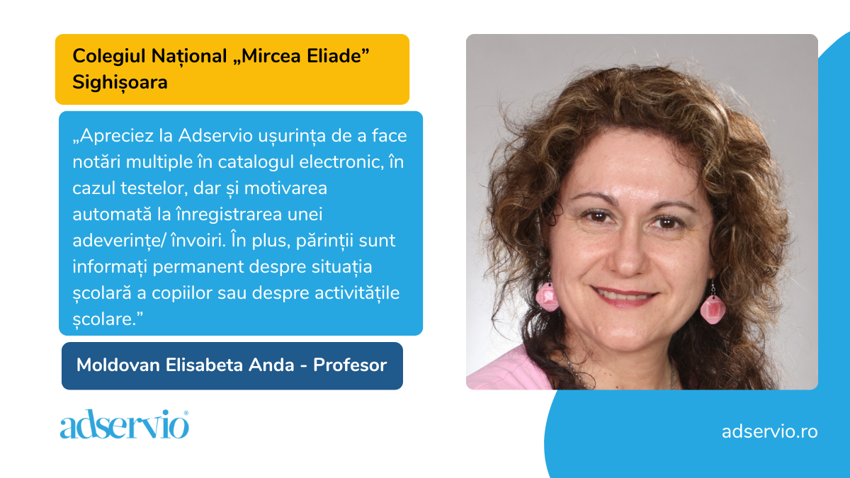 Deci e foarte simplu! Sute de alți directori vizionari au făcut acest pas încă de acum câțiva ani, când Adservio a promovat față de Minister ideea acestei pilotări. Rezultatele sale sunt extraordinare, mii de profesori economisind fiecare în jur de 4 – 6 ore pe săptămână datorită utilizării exclusive a catalogului electronic. De asta școlile înscrise deja cu Adservio în programul-pilot spun că nu s-ar mai întoarce niciodată la sistemul vechi. Tocmai fiindcă pot respira mai ușor când își fac treaba.