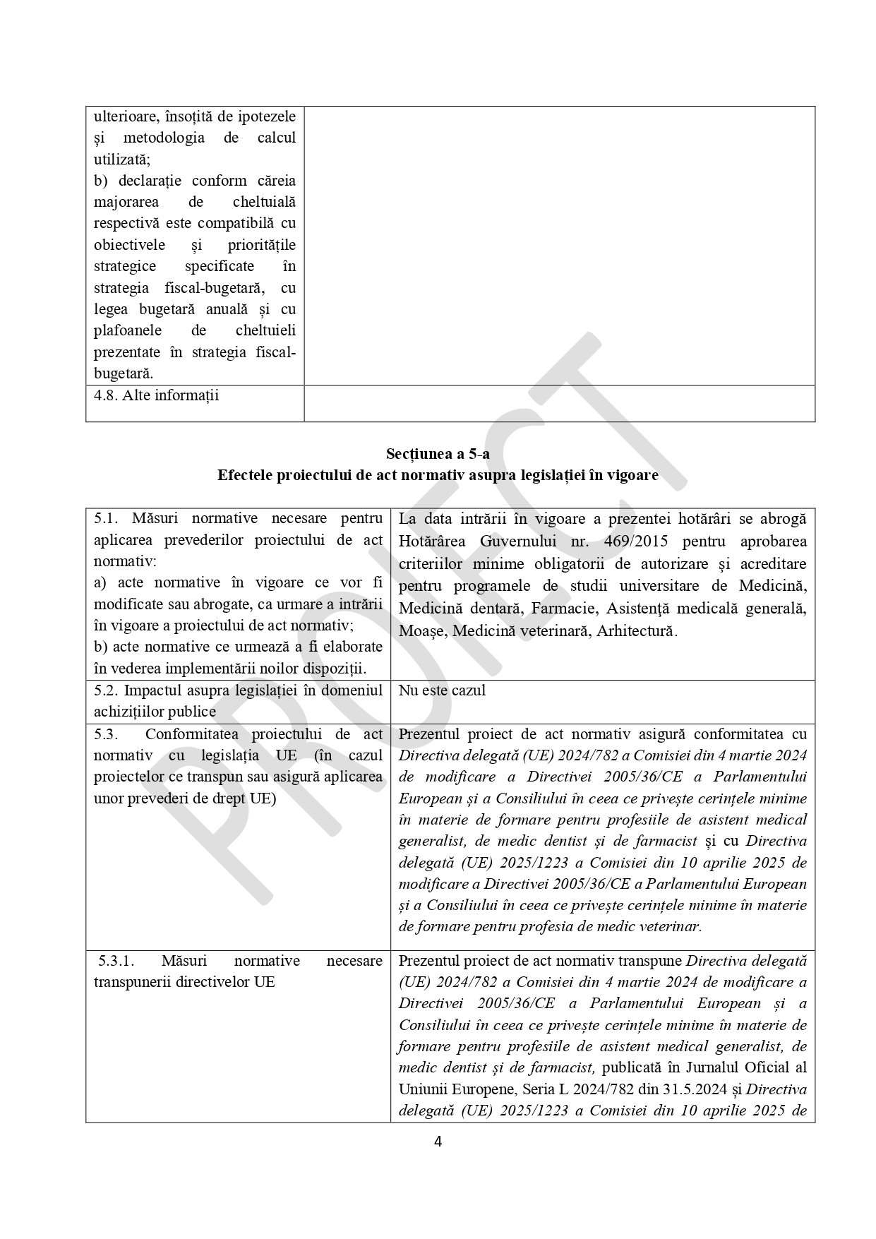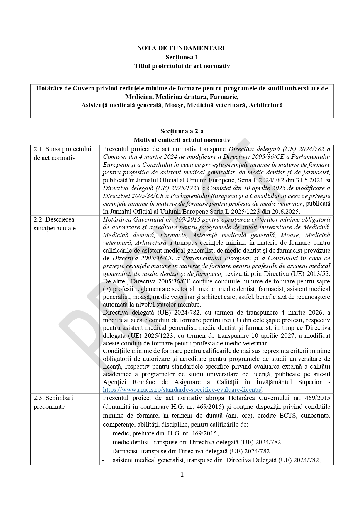 HG 469/2015, aflată în vigoare, transpune Directiva 2013/55/UE și Legea educației 1/2011, care nu mai este în vigoare din 2023.