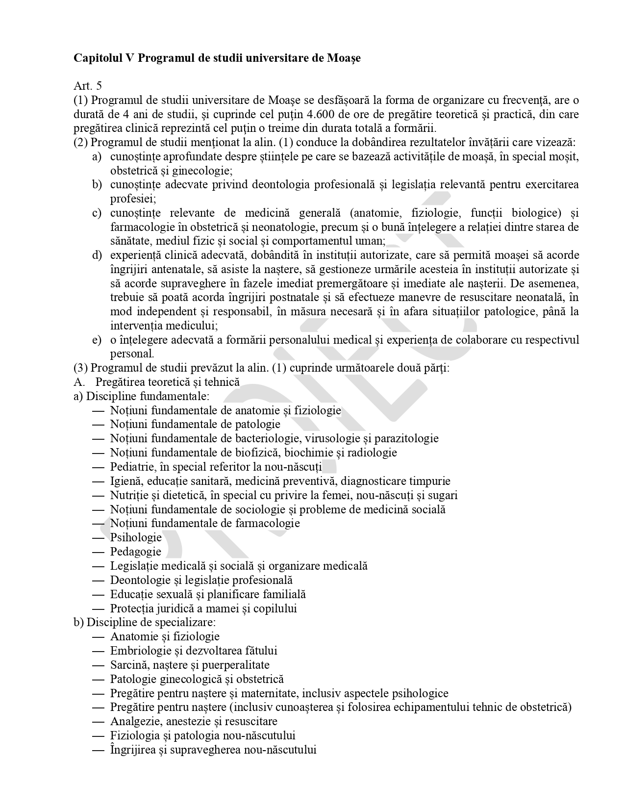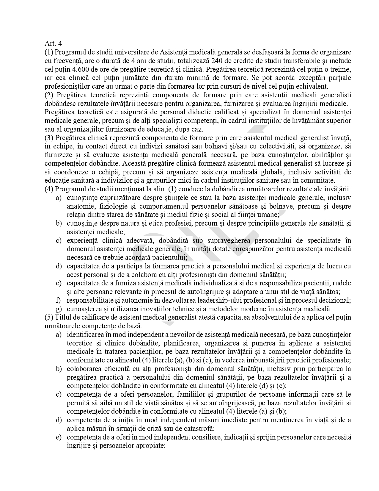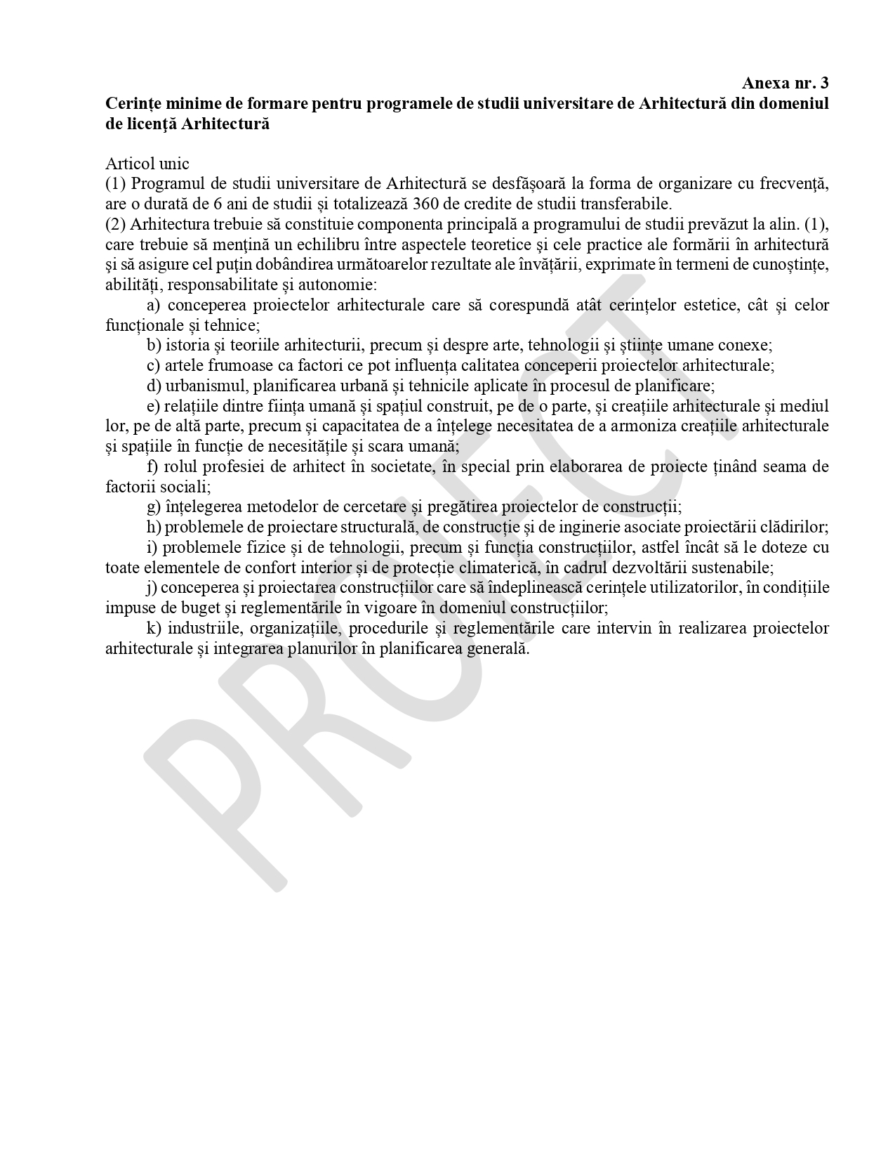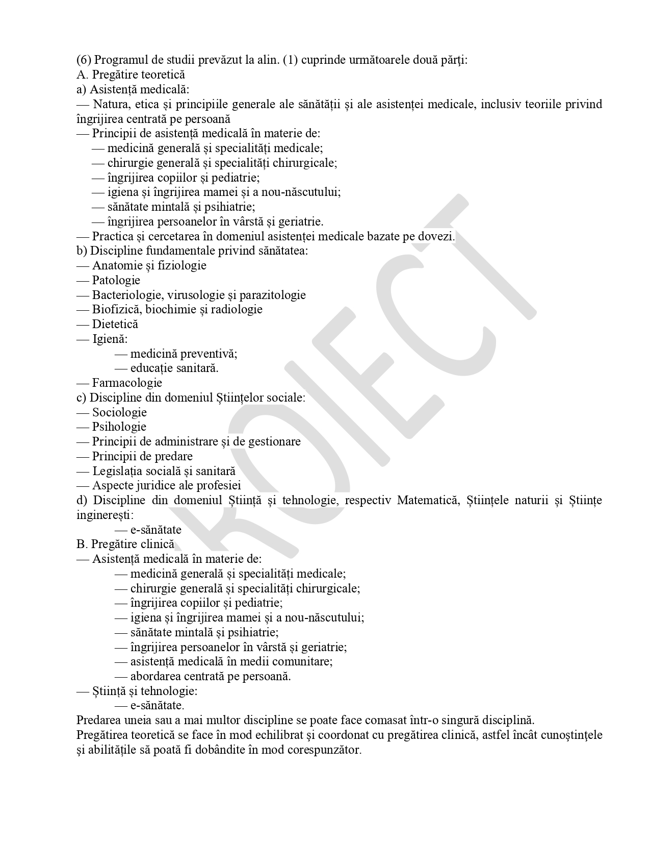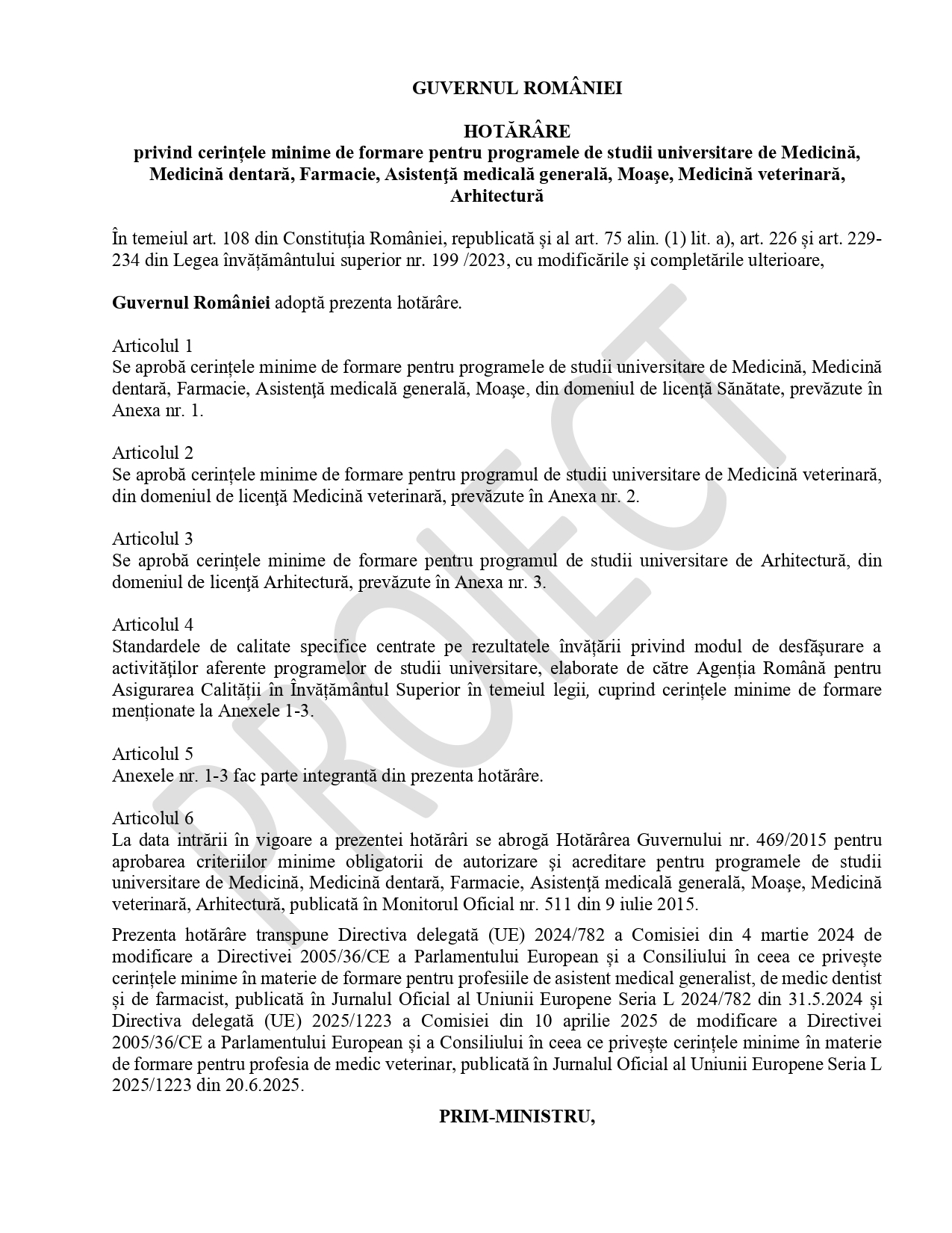 Cerințele minime de formare la programele de studii universitare din domeniile Medicină, Medicină dentară, Farmacie, Asistență medicală generală, Moașe, Medicină veterinară și Arhitectură. Un proiect de hotărâre de guvern (HG) care va înlocui reglementarea în vigoare din 2015 a fost pus în consultare publică de Ministerul Educației și Cercetării. Documentul transpune ultimele directive europene și aduce schimbări în conținutul și abordarea formării pentru aceste profesii de bază.