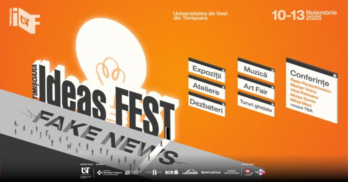 Când adevărul ajunge negociabil prin comentarii și algoritmii decid ce vedem, „Timișoara Ideas Fest” vine cu o temă fierbinte: Fake News. Jurnaliști, creatori de conținut, profesori și tineri se reunesc pentru a diseca mecanismele manipulării, a înțelege propaganda și a analiza cum modelează social-media percepția realității, cu dorința deschisă de a realiza reconstrucția încrederii în adevăr.