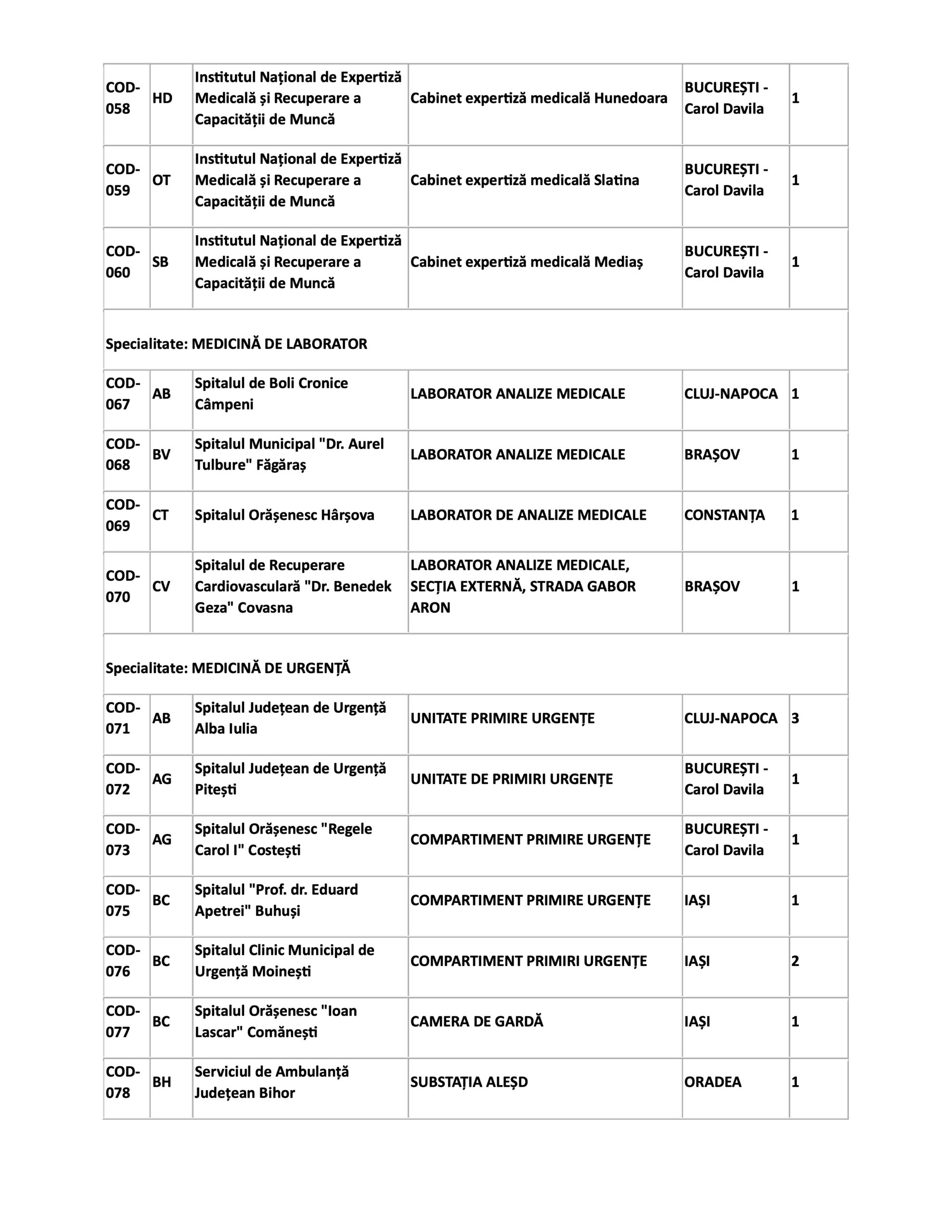 LISTA locurilor și a posturilor neocupate după prima zi de repartiție pentru Domeniul Medicină, publicată de Ministerul Sănătății