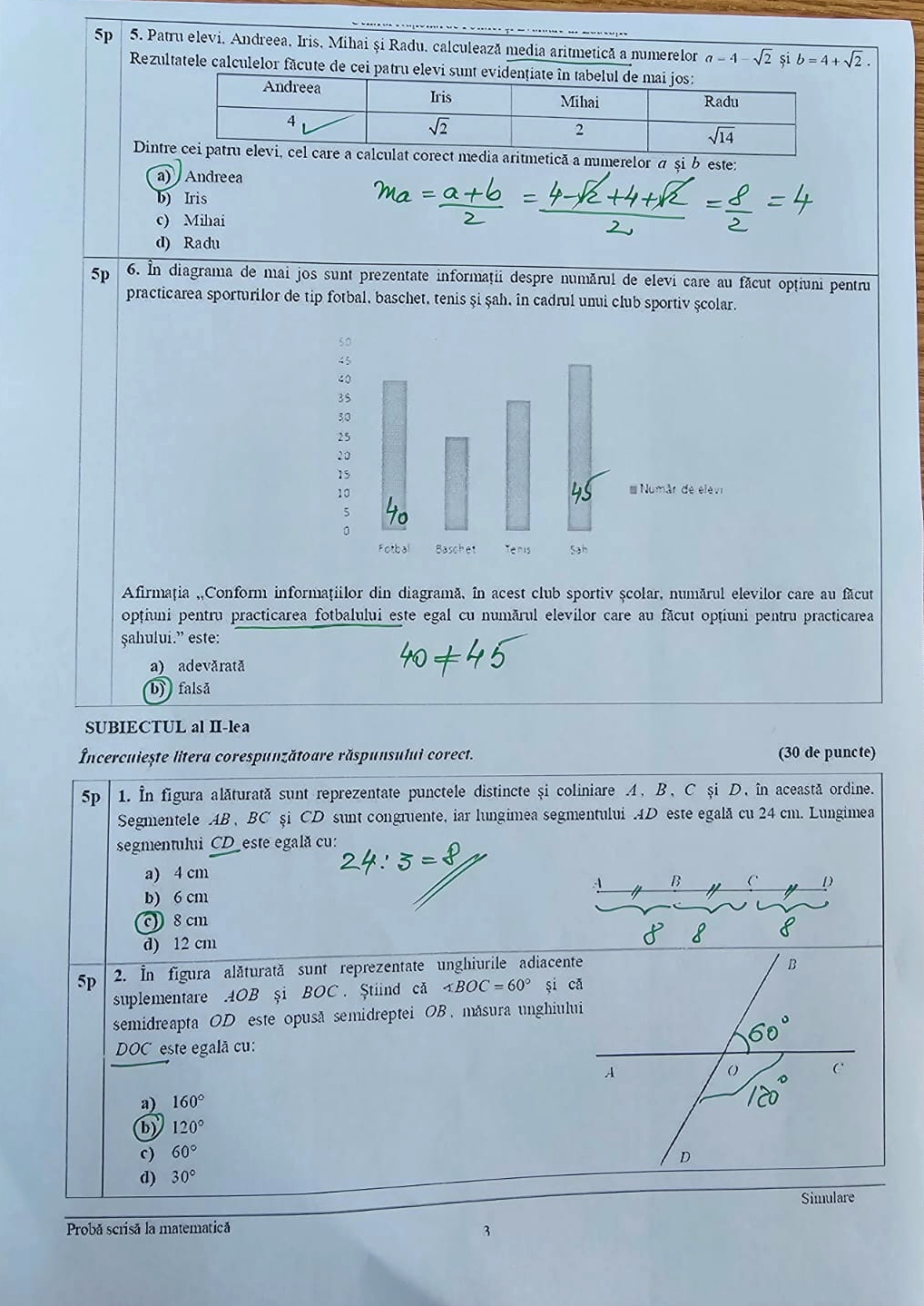 „Problema de geometrie în spațiu se regăsește în teste de antrenament, cu observația că rezolvarea punctului b) este posibilă doar cu evidențierea unui mijloc de segment. Nici cerința b) de la problema 1 subiectul III nu este banală. Notele vor fi măricele datorită grilelor ușurele, dar nu foarte mari din cauza punctelor menționate. Vor fi note de 10, dar nu foarte multe”, a mai spus profesorul.